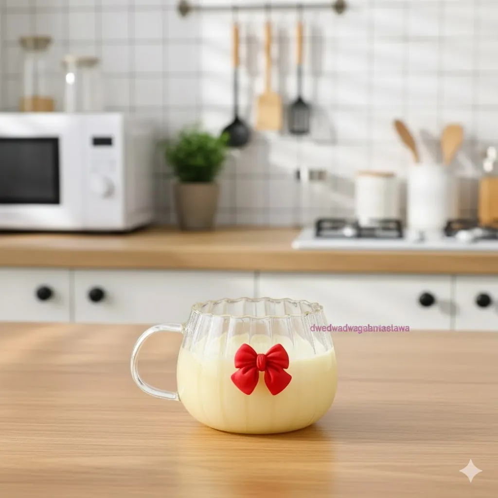 Its 500ml large capacity makes it ideal for coffee, tea, milk, juices, or smoothies. The bow-style handle design ensures a comfortable grip and a modern look.