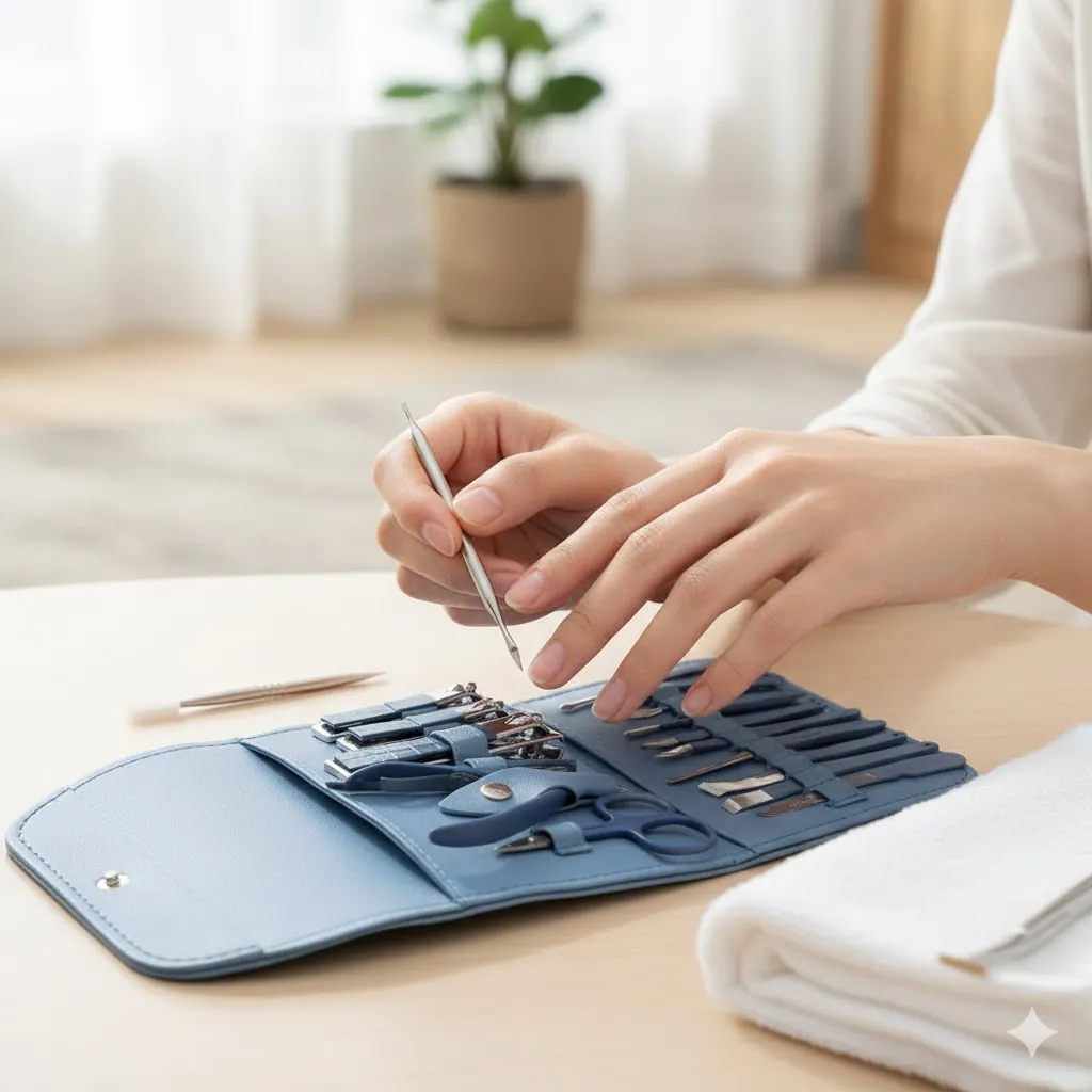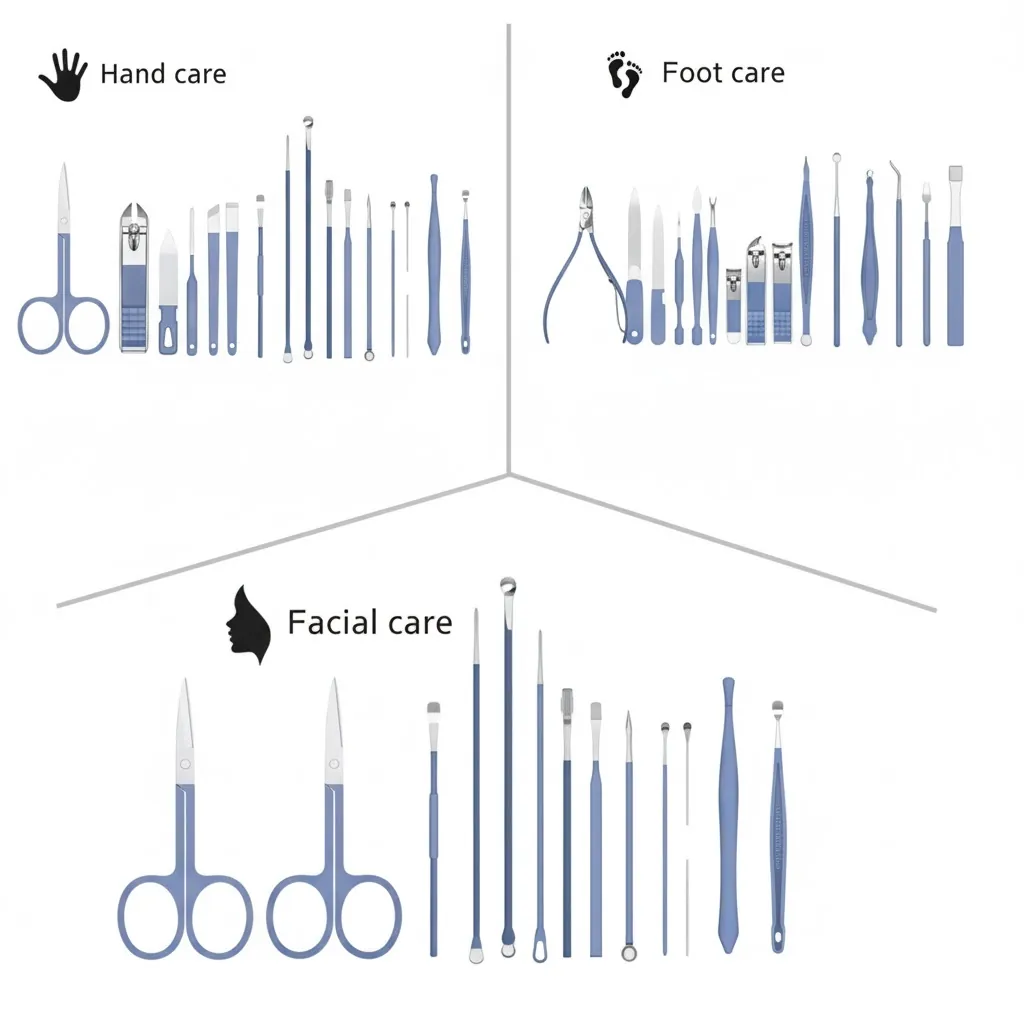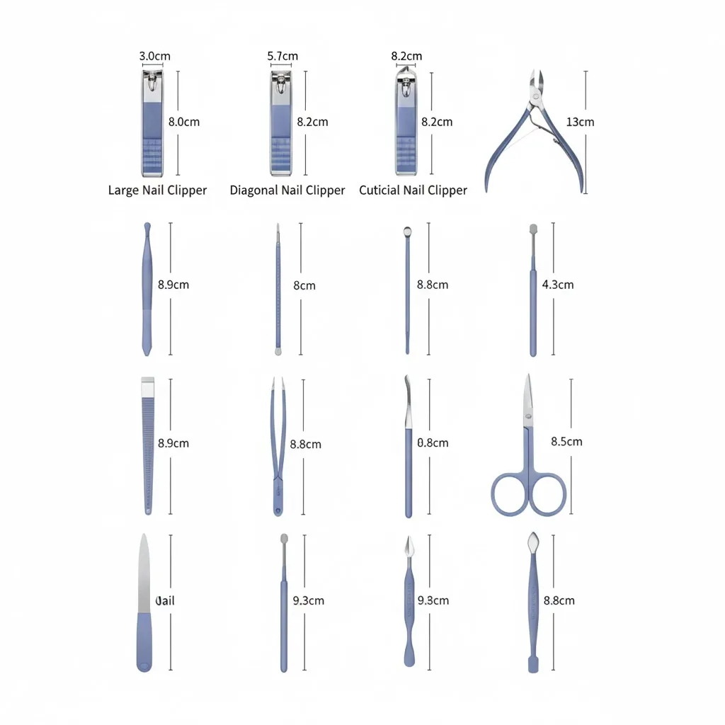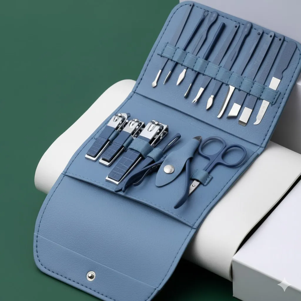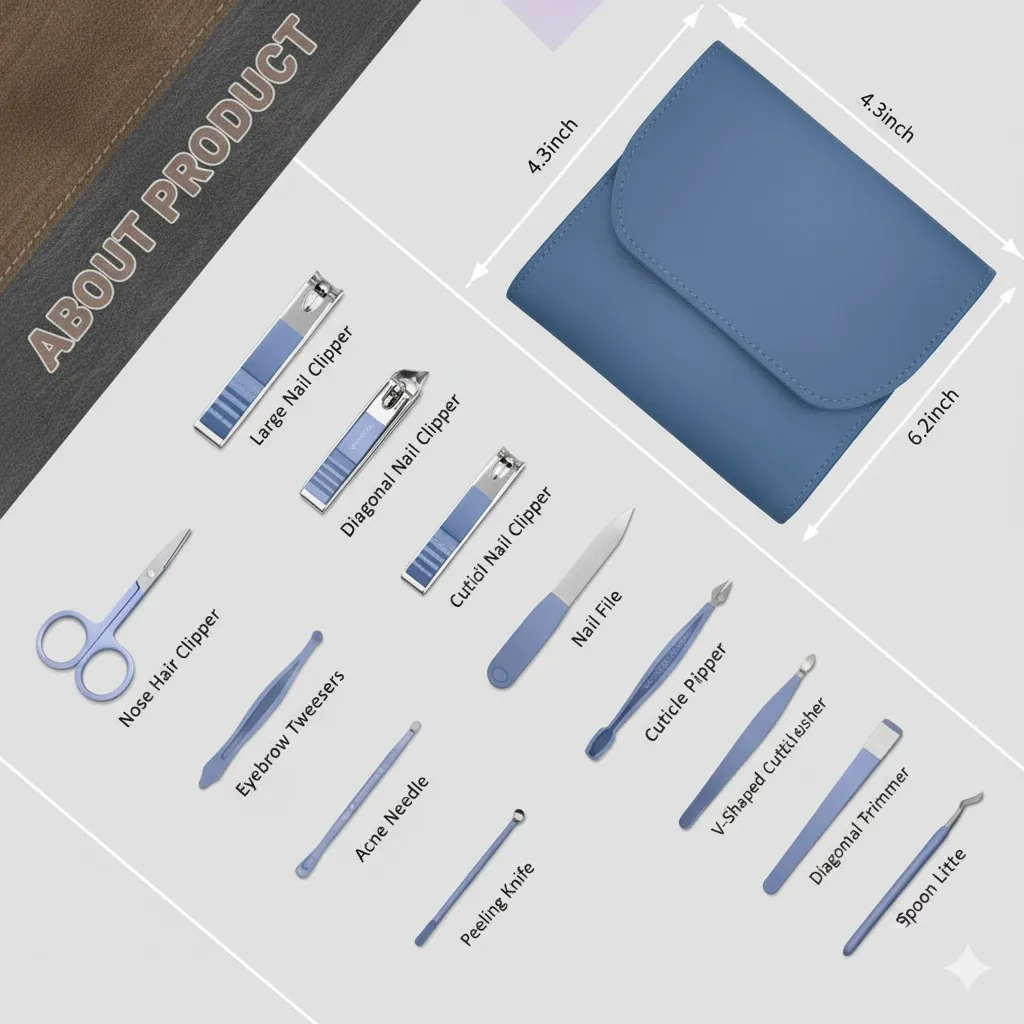 Elevate your self-care routine with the ultimate 15-piece Professional Manicure and Pedicure Set. Crafted from premium high-carbon surgical-grade stainless steel, this comprehensive kit ensures lifelong durability, rust-free use, and surgical-level precision for both men and women. This all-in-one grooming solution includes every essential tool for flawless nail care, from precise trimming and expert cuticle management to specialized pedicure and facial tools (like tweezers and acne extractors).