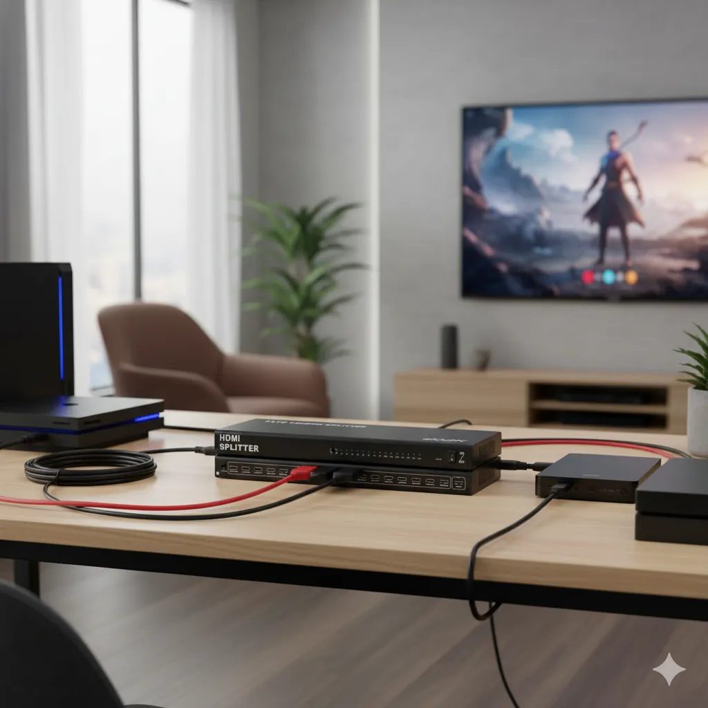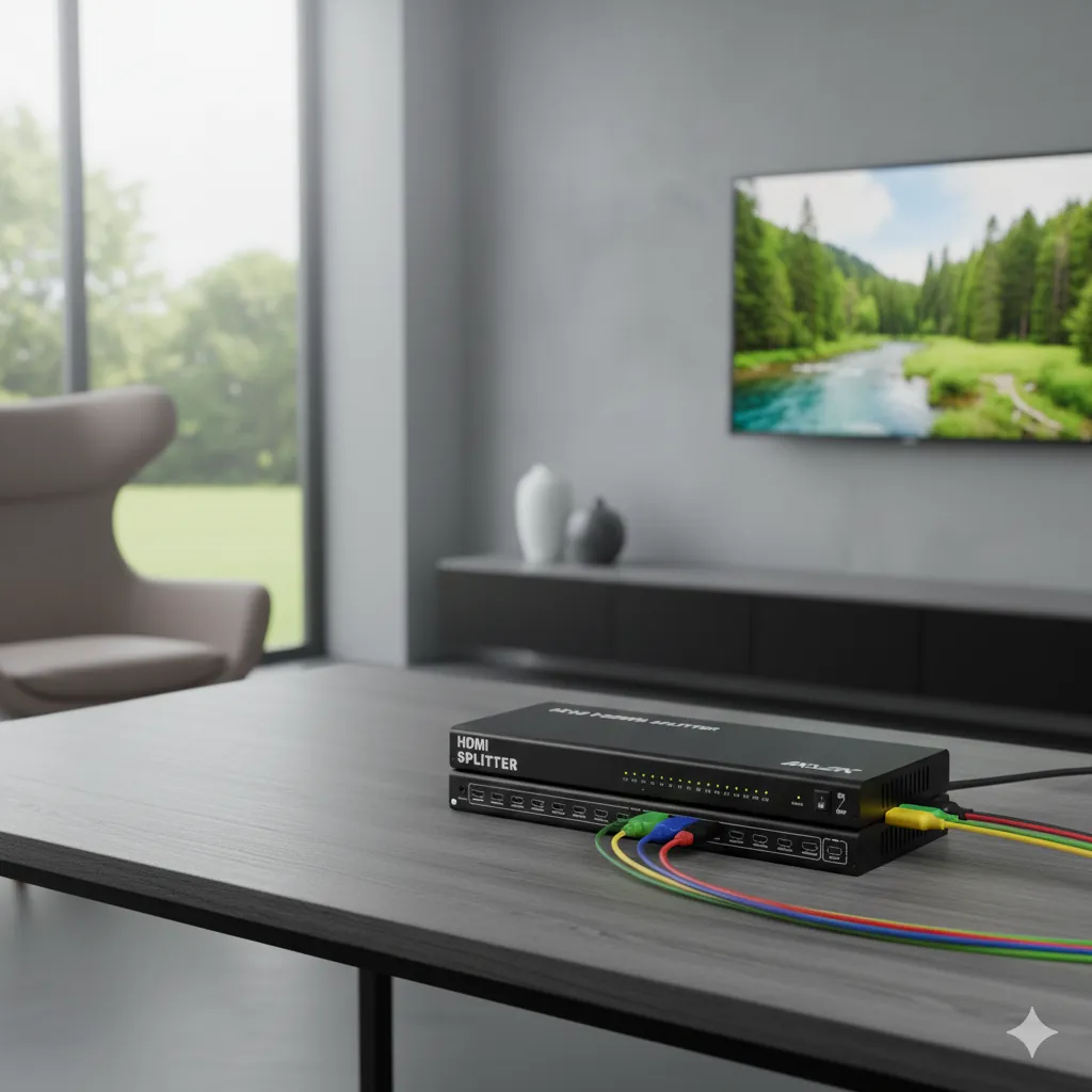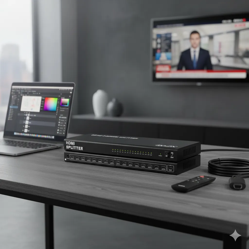 This powerful 1x16 HDMI Splitter is engineered for professional, large-scale video distribution. It takes one HDMI source signal (like a PC, console, or media player) and sends it to sixteen separate HDMI output displays without any degradation. Supporting full 4K x 2K resolution, it ensures every viewer sees a vibrant, high-fidelity picture. Built with an integrated signal amplifier, it maintains signal integrity even over longer cable runs, making it the ideal solution for digital signage networks, corporate lecture halls, and retail video walls.Designed for 24/7 reliability, this splitter features a robust metal chassis that aids in efficient heat management and ensures long product life. It supports various audio formats and is completely plug-and-play, requiring no complex software setup. Whether you are connecting a PlayStation 5, an Xbox Series X, or a high-end Blu-ray player, its wide compatibility makes it the perfect hub for managing multiple video outputs in broadcasting, gaming centers, and sophisticated home theater setups.