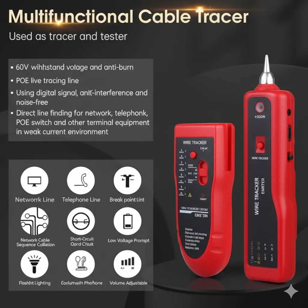 This Professional 868 Wire Tracker is an essential, multi-functional tool designed for network engineers, electricians, and DIY enthusiasts. It's expertly engineered to quickly and accurately locate and test a wide variety of low-voltage cables, making network and telecommunication troubleshooting straightforward and efficient.