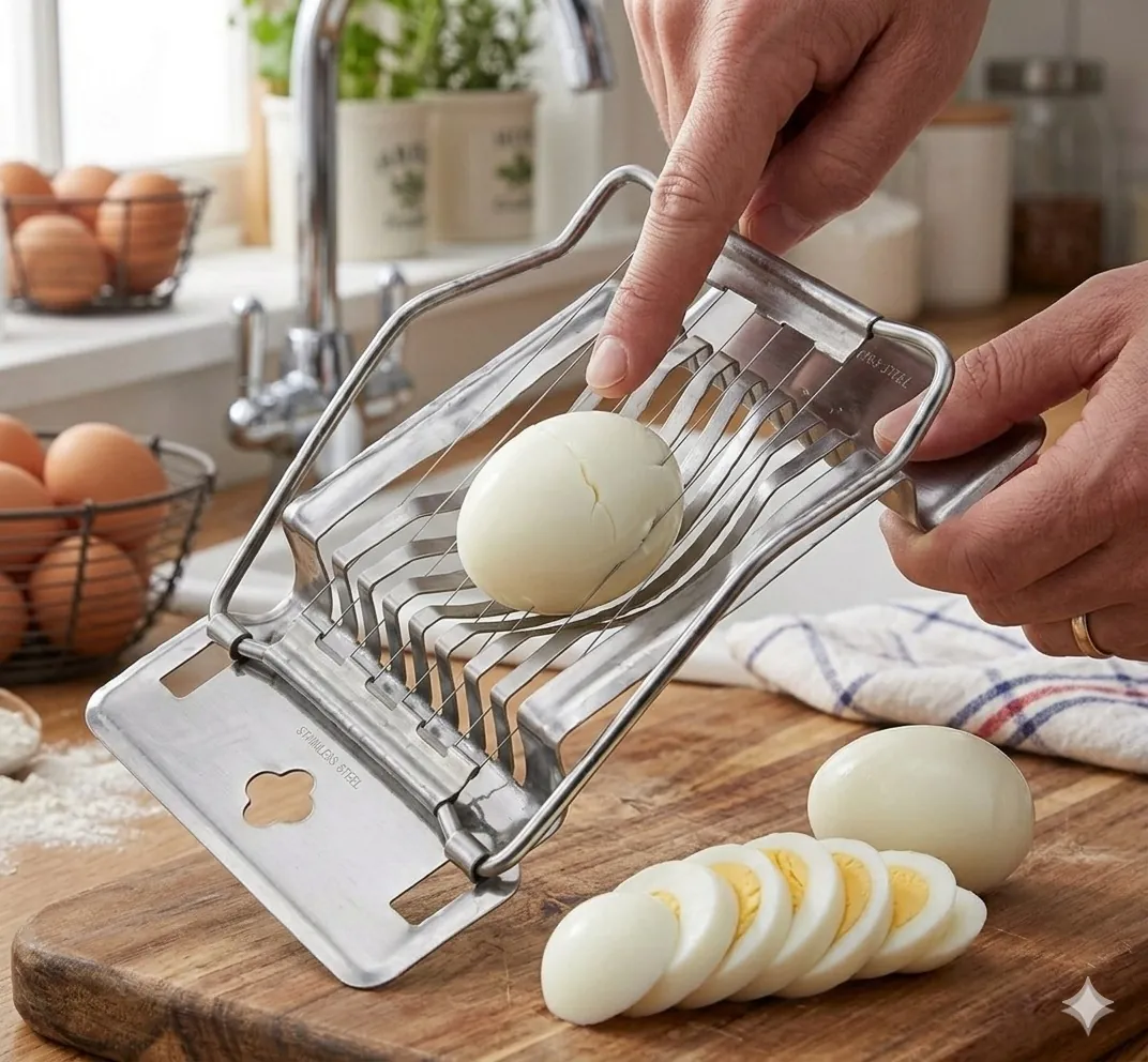 Take the struggle out of food presentation with the Ultimate Stainless Steel Multi-Slicer. Unlike flimsy plastic alternatives, this slicer is constructed from premium, food-grade stainless steel, ensuring it won't warp, snap, or rust even with daily use.Its ergonomic design allows you to slice hard-boiled eggs for salads, mushrooms for sautéing, or strawberries for desserts in one swift motion. The precision-spaced wires are engineered to provide clean, consistent cuts without crushing delicate ingredients. Whether you are a home cook looking to speed up meal prep or a professional chef aiming for garnish perfection, this sleek, compact tool is a must-have addition to your kitchen arsenal.