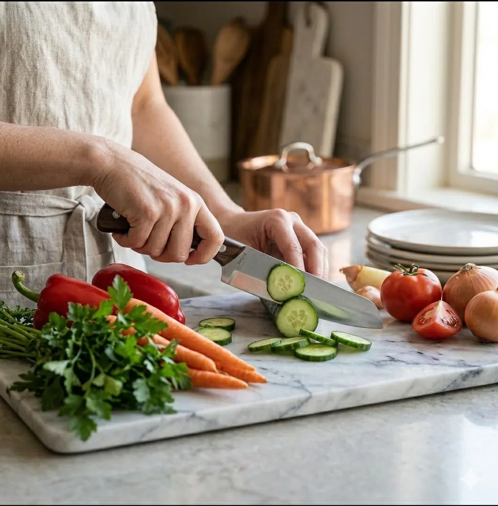 Whether you are carving meat, slicing through tough vegetables, or finely mincing herbs, the balanced weight distribution provides maximum control. The traditional ergonomic wooden handle is triple-riveted for extra strength and provides a comfortable, non-slip grip even during extended use. This knife is not just a tool; it’s a reliable kitchen companion that combines traditional craftsmanship with modern durability.