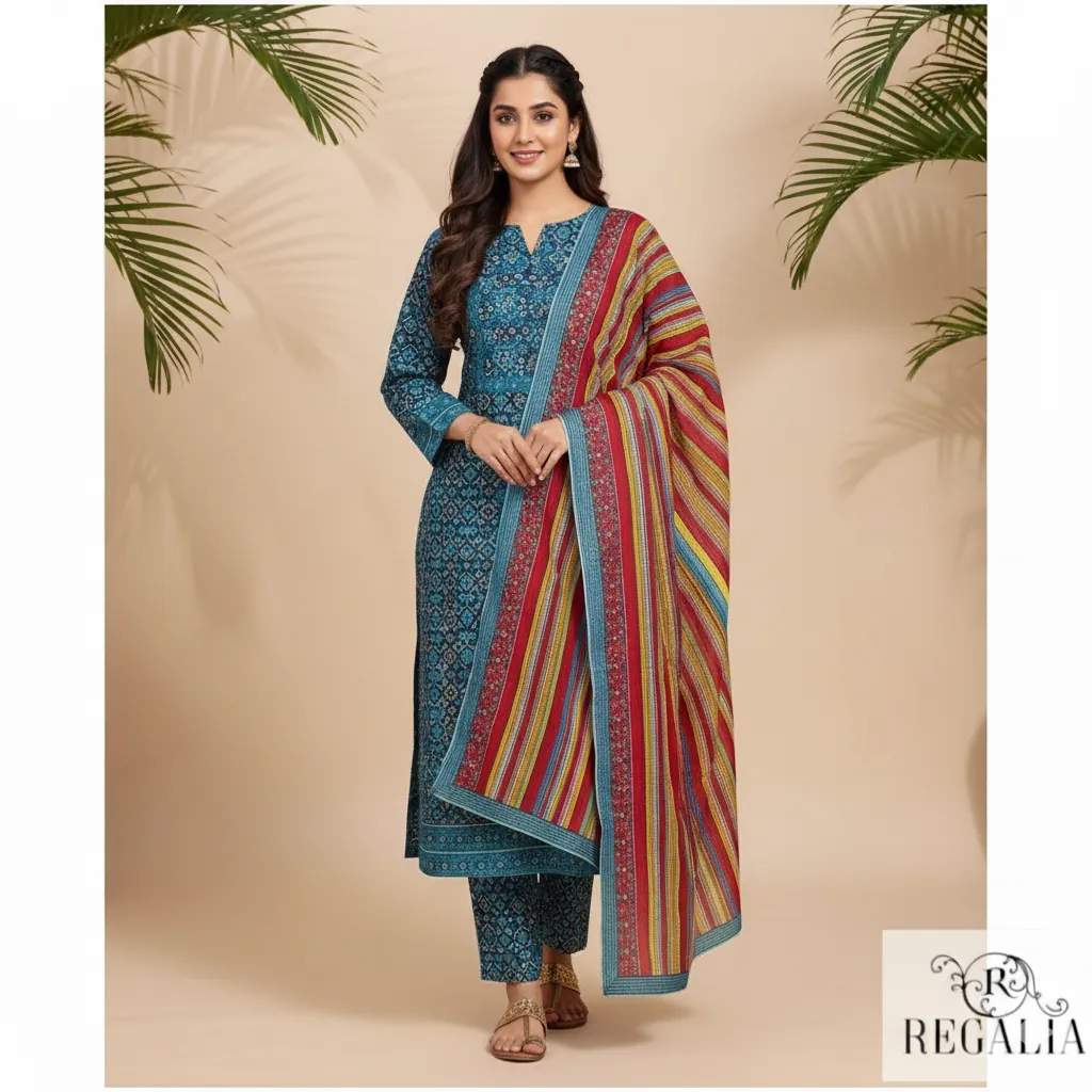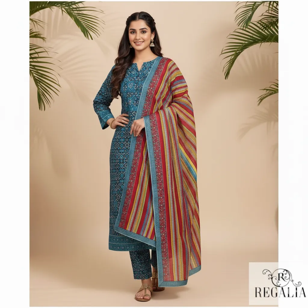 Regalia 3-Piece Teal Blue Digital Printed Khaddar Suit | Unstitched Pakistani Winter Collection. Discover the perfect fusion of tradition and contemporary design with the new Regalia 3-Piece Printed Khaddar Collection. This unstitched suit is meticulously crafted to add a touch of grace and warmth to your winter wardrobe.