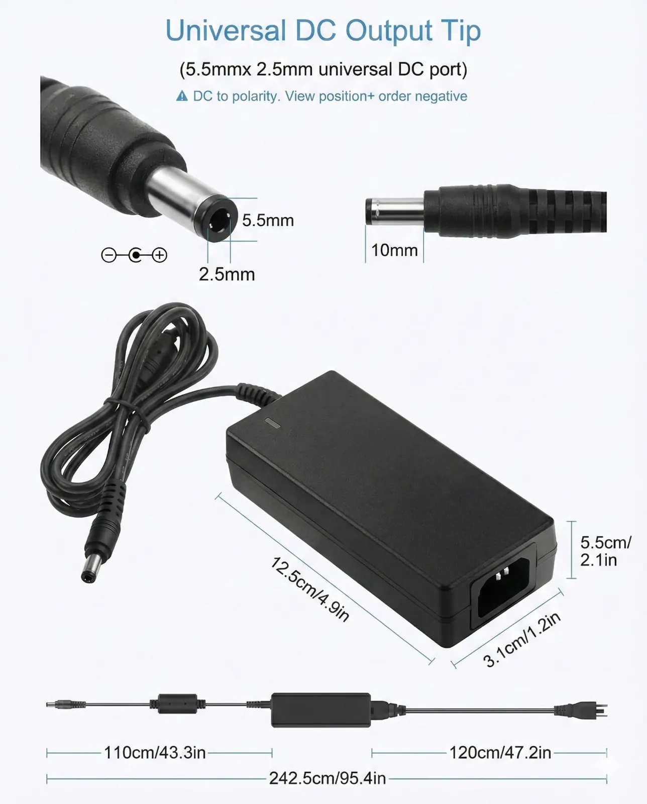 The unit features an adjustable output voltage range of allowing for fine-tuning. Safety is prioritized with integrated Overload, Over Voltage, and Short Circuit protection, ensuring automatic recovery after a fault. Built for durability, this adapter is Full Load Burn-in Tested, cooled by free air convection, and includes a Power LED Monitor for visual status confirmation. Its compact size, low energy consumption, and high reliability make it an excellent choice for any application.