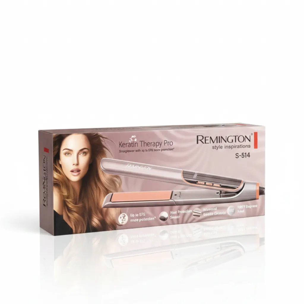 The Remington Keratin Therapy Pro Hair Straightener S-514 is designed to protect your hair while delivering professional styling results. It comes with advanced ceramic plates infused with Keratin and Almond Oil, helping to strengthen hair and reduce damage during styling.
