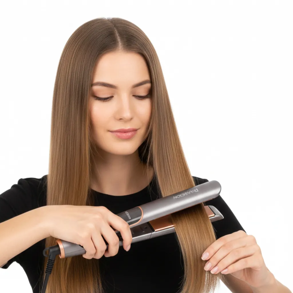 Equipped with a Heat Protection Sensor, this straightener continuously adjusts the temperature to minimize heat damage and maintain hair health. It offers fast heat-up and smooth plate glide for effortless styling without pulling or snagging.