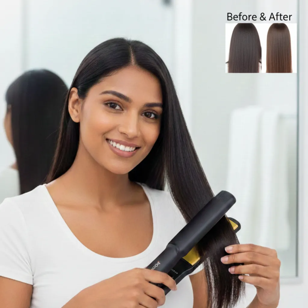 This straightener heats up quickly, saving time and making it perfect for daily use. Its ergonomic and lightweight design offers comfortable handling, allowing easy styling from root to tip. Whether you want silky straight hair or soft waves, this straightener delivers consistent performance for all hair types.