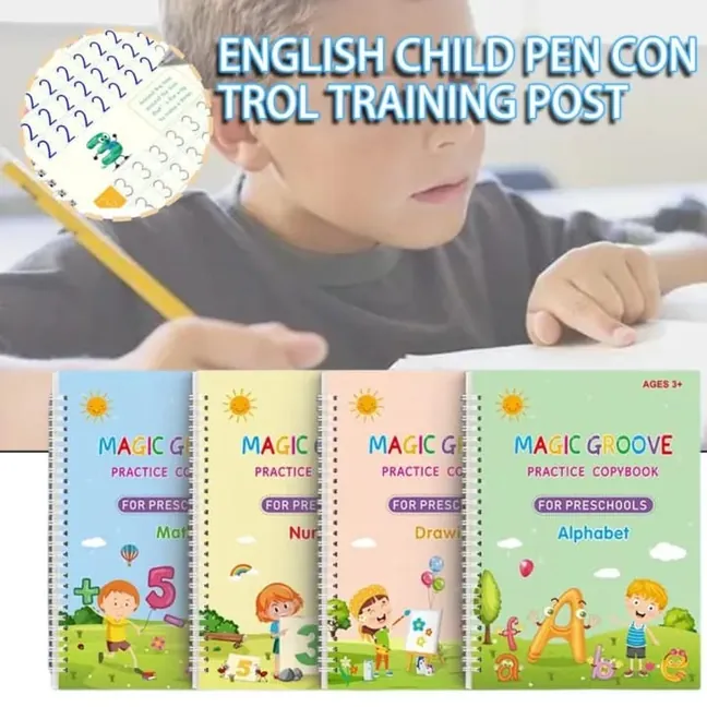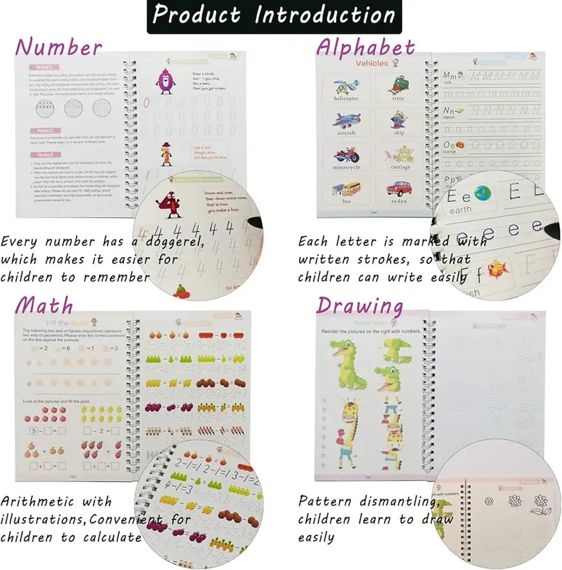 Reusable Magic Practice Copybook Set for Children | Handwriting & Calligraphy.Make learning fun and easy for your kids with this complete Sank Magic Copybook set. It's a revolutionary educational tool designed to help children master handwriting, calligraphy, basic math, and drawing. This comprehensive set includes 4 different books: