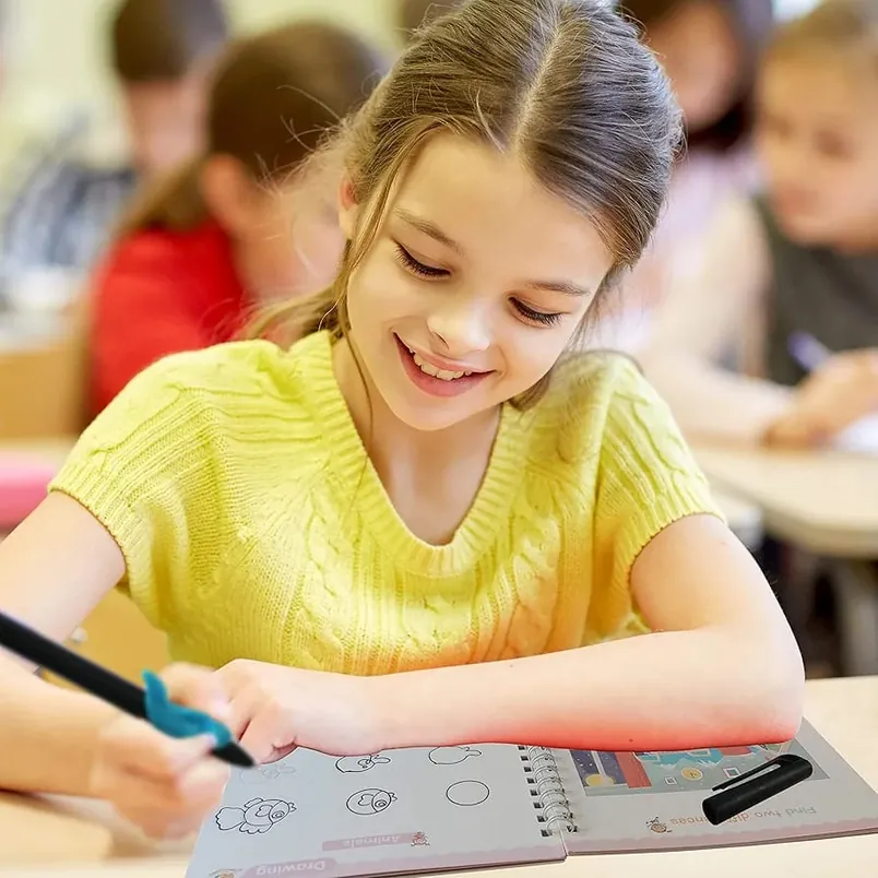 The biggest feature of this copybook is its reusable design. The magic ink automatically fades away as it dries, leaving the pages clean and ready for reuse. This is not only a cost-effective solution but also helps save paper. The unique groove design on each page guides children to hold the pen correctly, which significantly improves their grip and handwriting. This set is ideal for kids aged 3 to 8 and is a great investment in their early education.