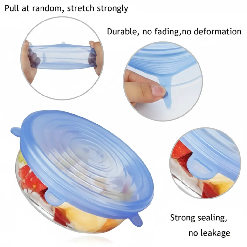 Revolutionize your kitchen storage with our 6-Pack Reusable Silicone Stretch Lids Food Covers. This versatile set provides a sustainable and convenient alternative to wasteful plastic wrap and aluminum foil, helping you reduce environmental impact while keeping your food fresher for longer.