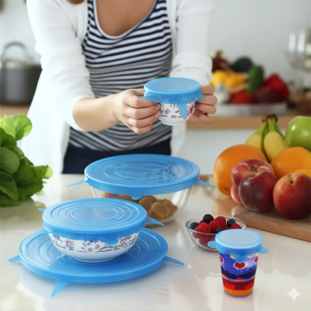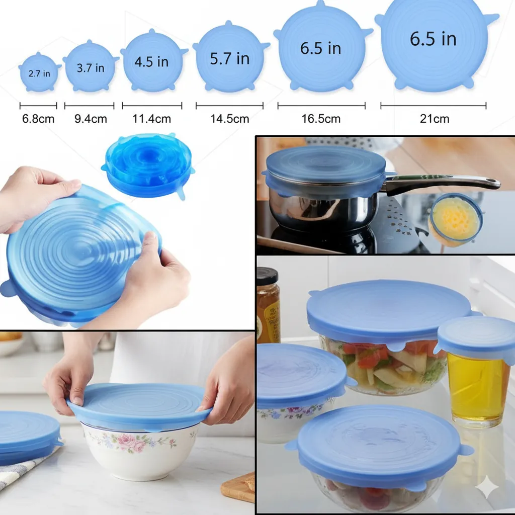 6-Pack Reusable Silicone Stretch Lids Food Covers | Assorted Sizes for Bowls, Pots, Cans & Cups | Airtight, Leak-Proof & Dishwasher Safe Food Savers