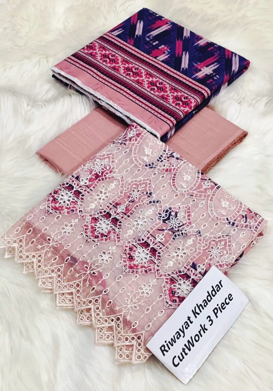 Riwayat Dusty Pink Embroidered Khaddar Suit with Magenta & Blue Dupatta | 3-Piece Unstitched Winter Collection. Discover a perfect blend of subtlety and splendor with this elegant design from the Riwayat 🍂 Collection. Crafted from premium, pure Khaddar, this unstitched suit is designed to provide luxurious comfort and warmth, making it an ideal addition to your Autumn and Winter wardrobe.
