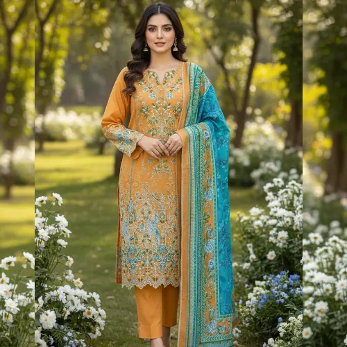 Completing the set are the premium dyed Khaddar trousers, woven using superior airjet technology to ensure a smooth texture and lasting quality. This unstitched suit gives you the liberty to have it tailored to your unique style and perfect fit, making it a versatile addition to your wardrobe for everything from daytime gatherings to semi-formal events.