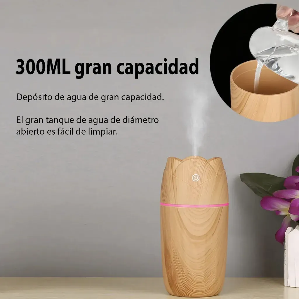This humidifier helps reduce dry air problems, keeps the skin hydrated, and protects against dry lips and throat. When used with essential oils, it also works as an aroma diffuser that helps reduce stress and refresh your mood.