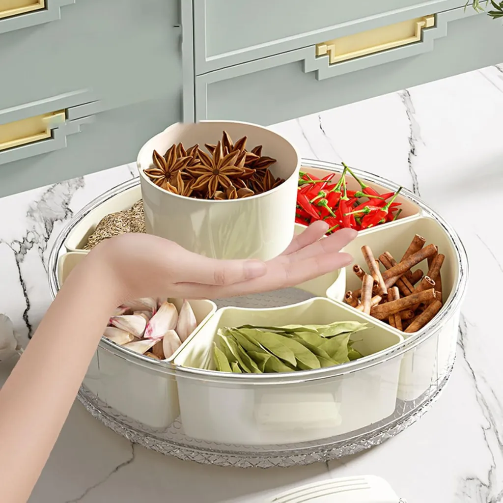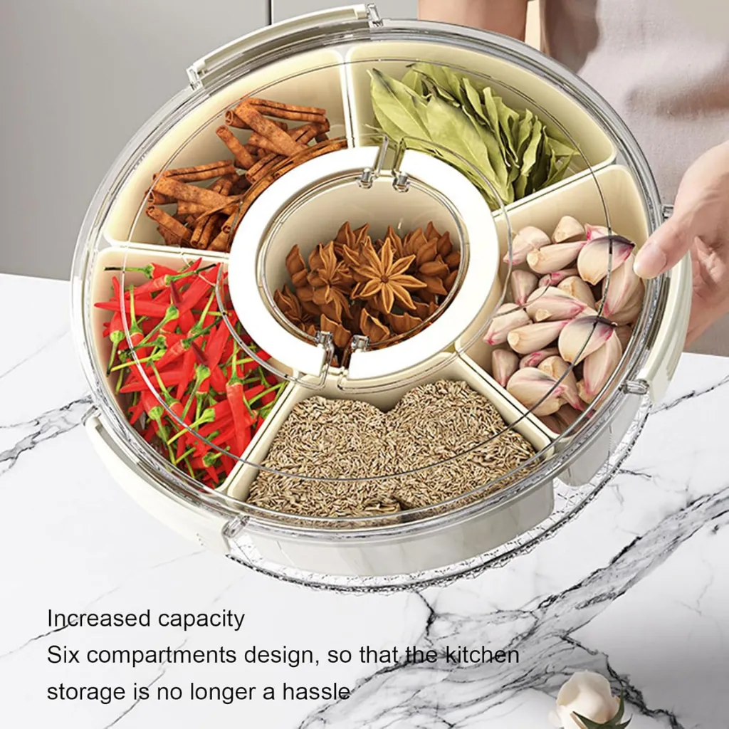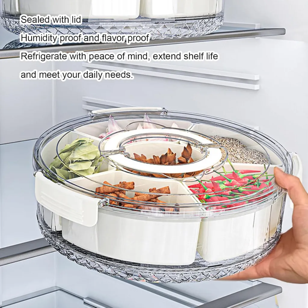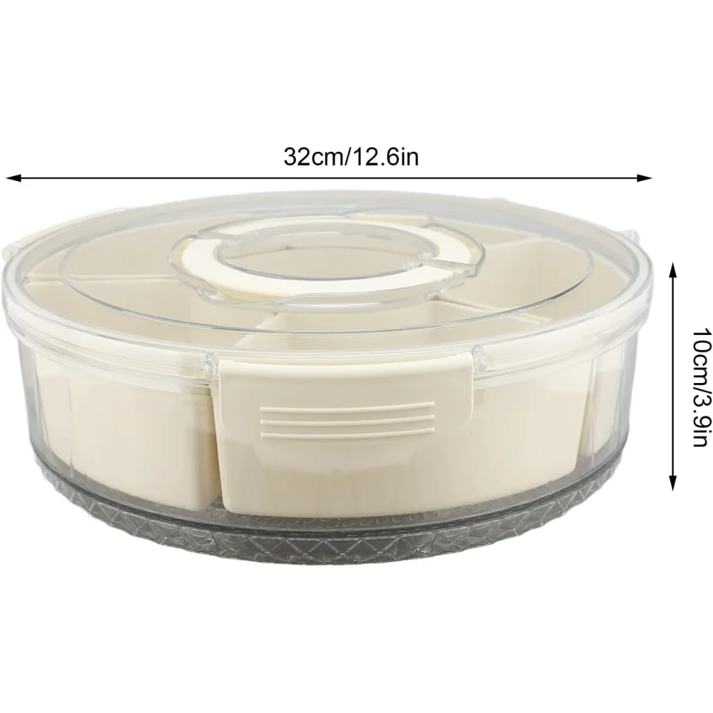 Upgrade your snack serving experience with this Rotating Snack Organizer Tray with Lid and Handle. Designed with multiple compartments, it allows you to store different snacks like dry fruits, candies, nuts, and chips in one place. The 360° rotating design ensures easy access, making it perfect for gatherings, parties, or daily use.