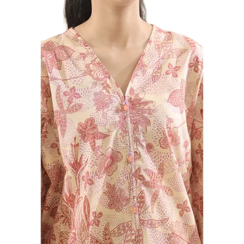 ✔ Shirt: Printed Lawn – Peach base with pink floral pattern
