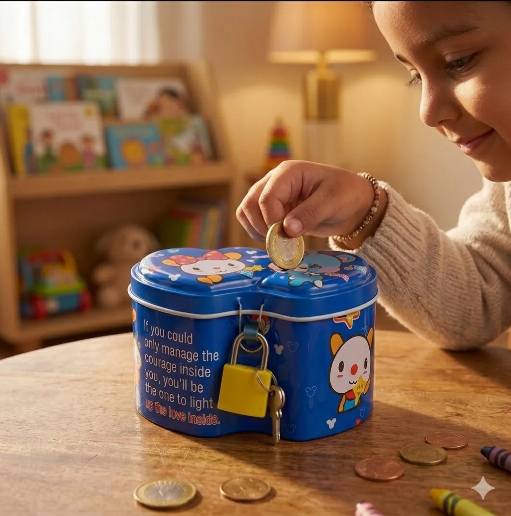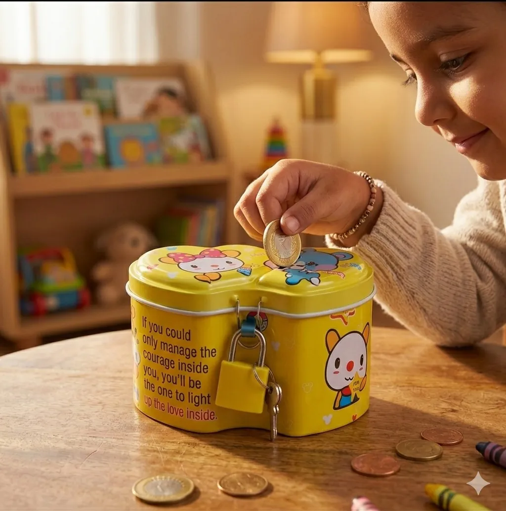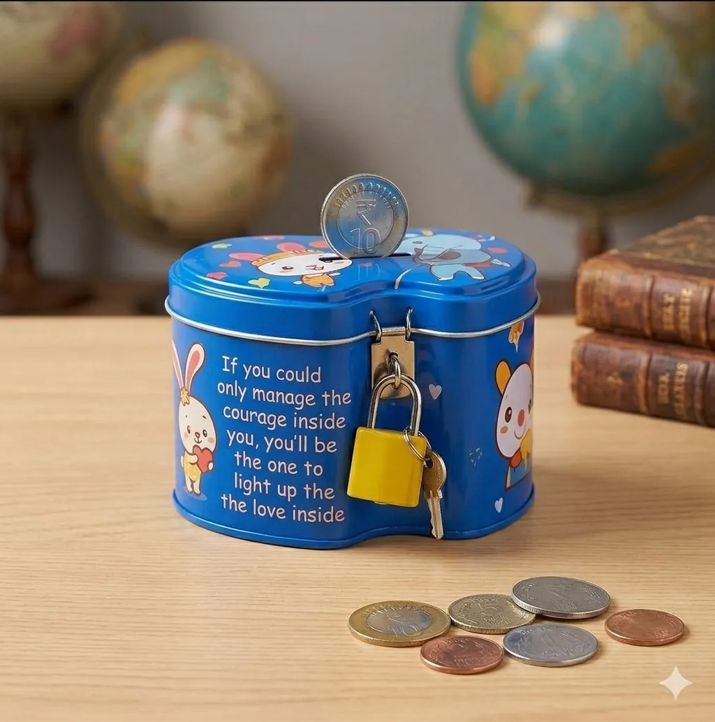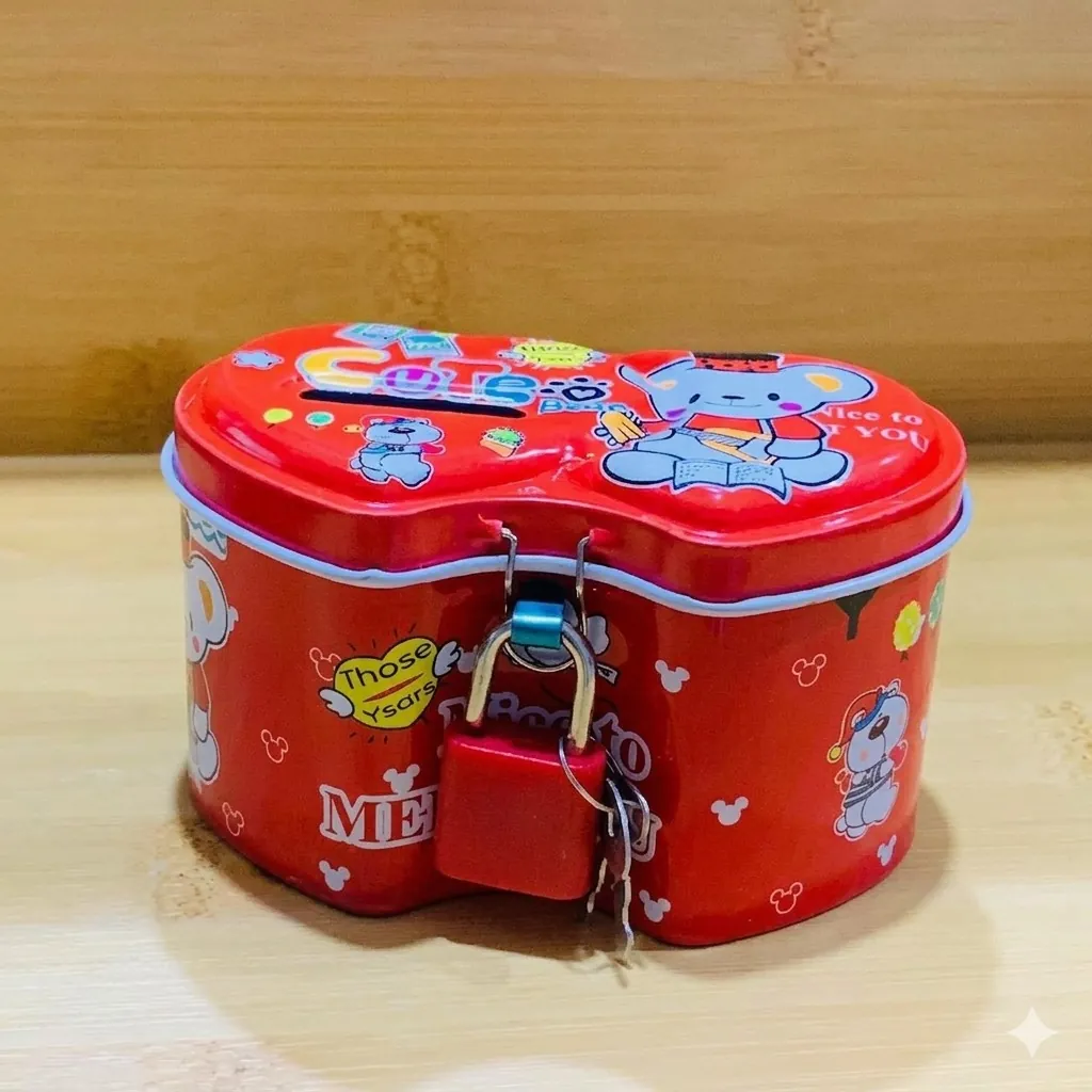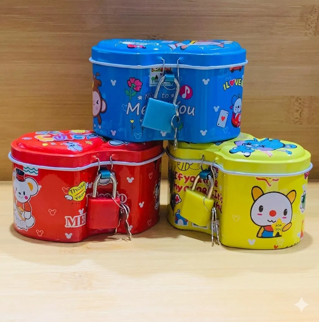 Make saving money an adventure with our Premium Cartoon Metal Piggy Bank Set. Designed with a unique double-heart silhouette, these tin boxes are as decorative as they are functional. The set includes three bright colors—Red, Blue, and Yellow—each adorned with adorable animal characters and cheerful graphics that appeal to children of all ages.