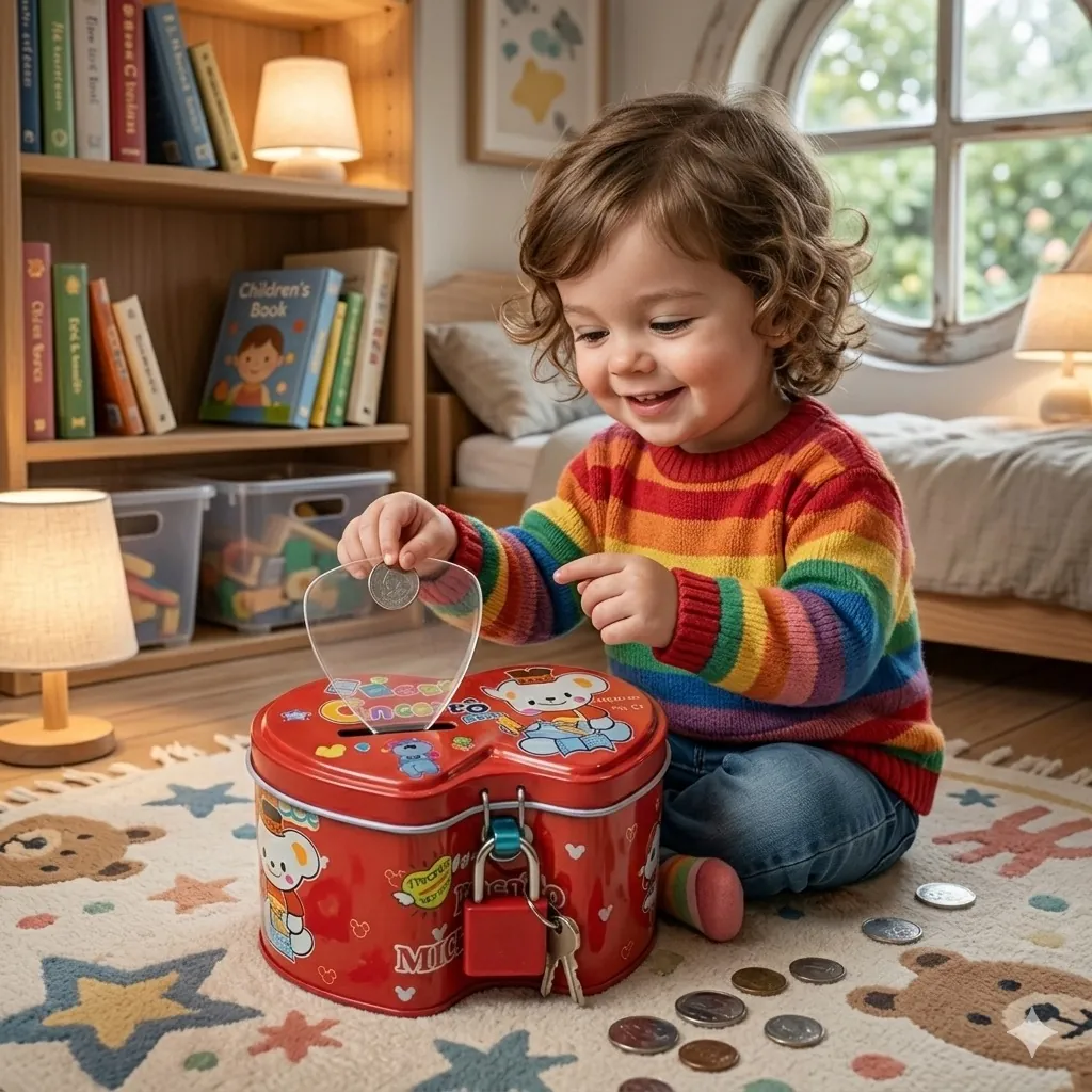 Set of 3 Heart-Shaped Metal Piggy Banks with Padlocks and Keys | Colorful Cartoon Tin Money Boxes for Kids’ Savings and Keepsakes