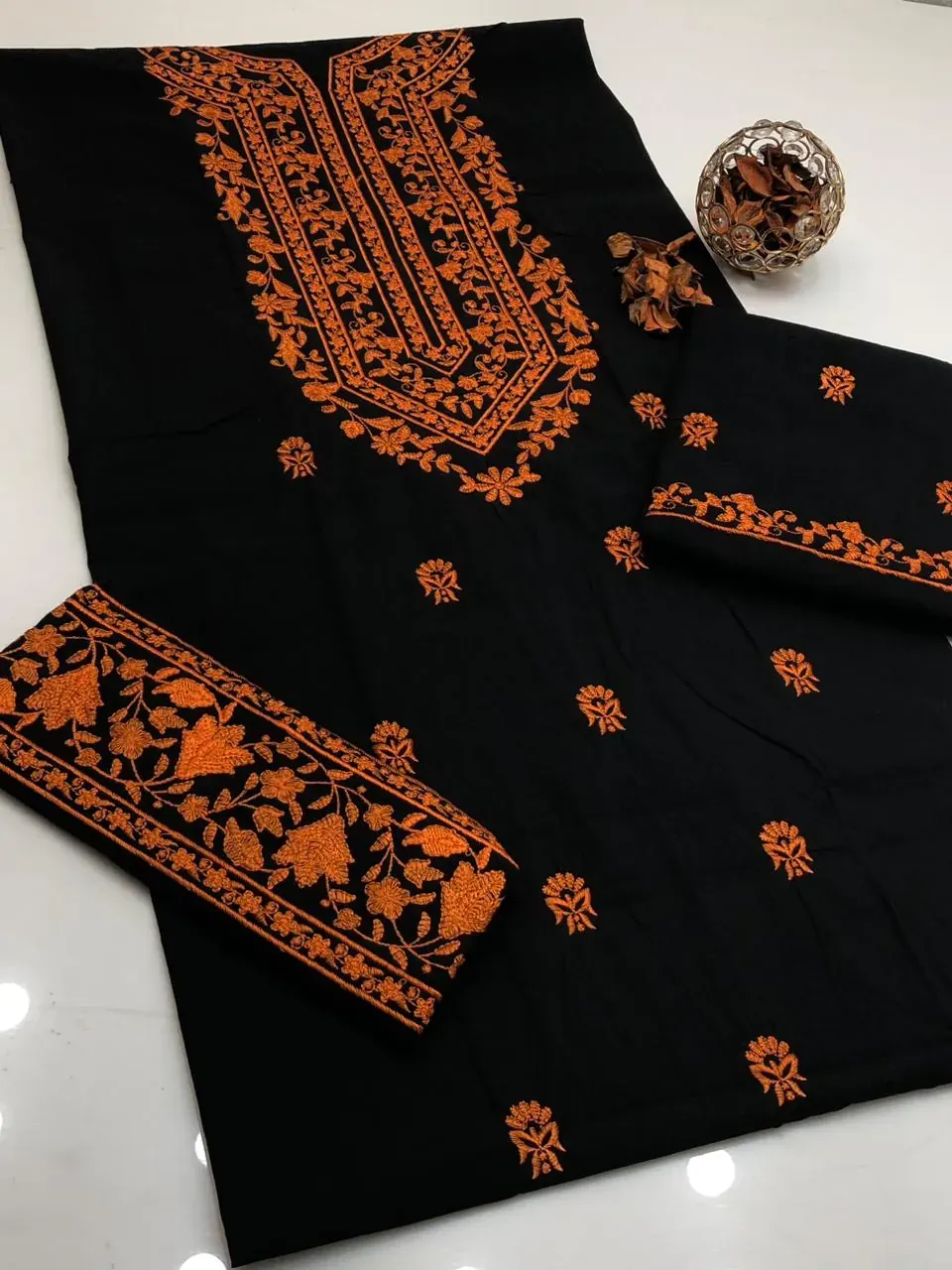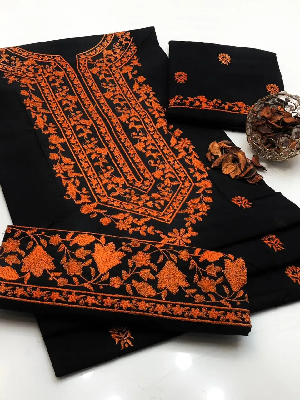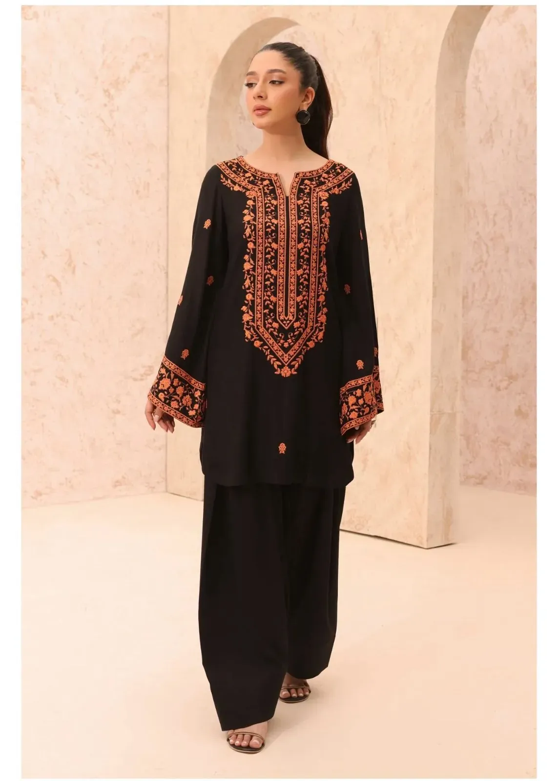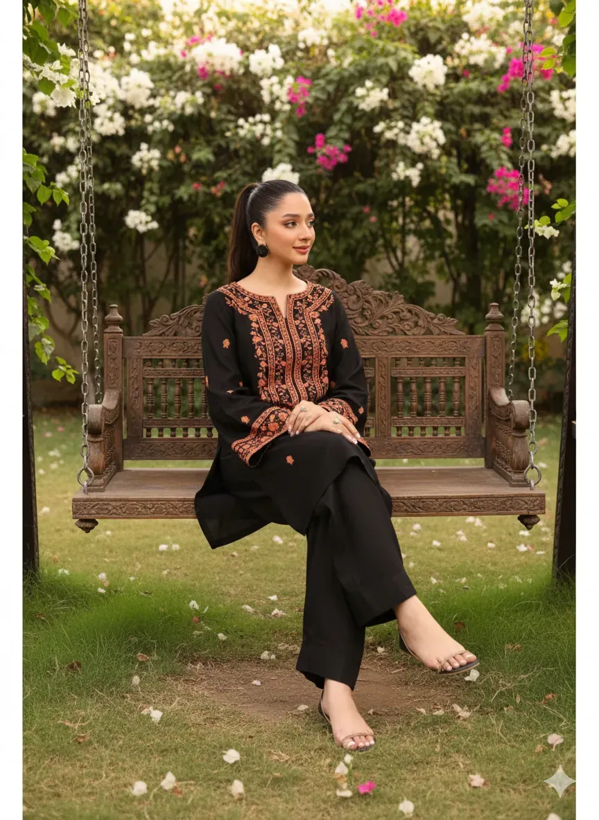 The set is completed with a Cotton Fully Embroidery Poncha Trouser, which adds to the overall richness of the design. We are committed to providing the best quality at the best rates, with a 100% guarantee on our neat and clean, excellent fabric. This article is a true testament to our dedication to quality, ensuring you don't have to compromise on style or comfort.
