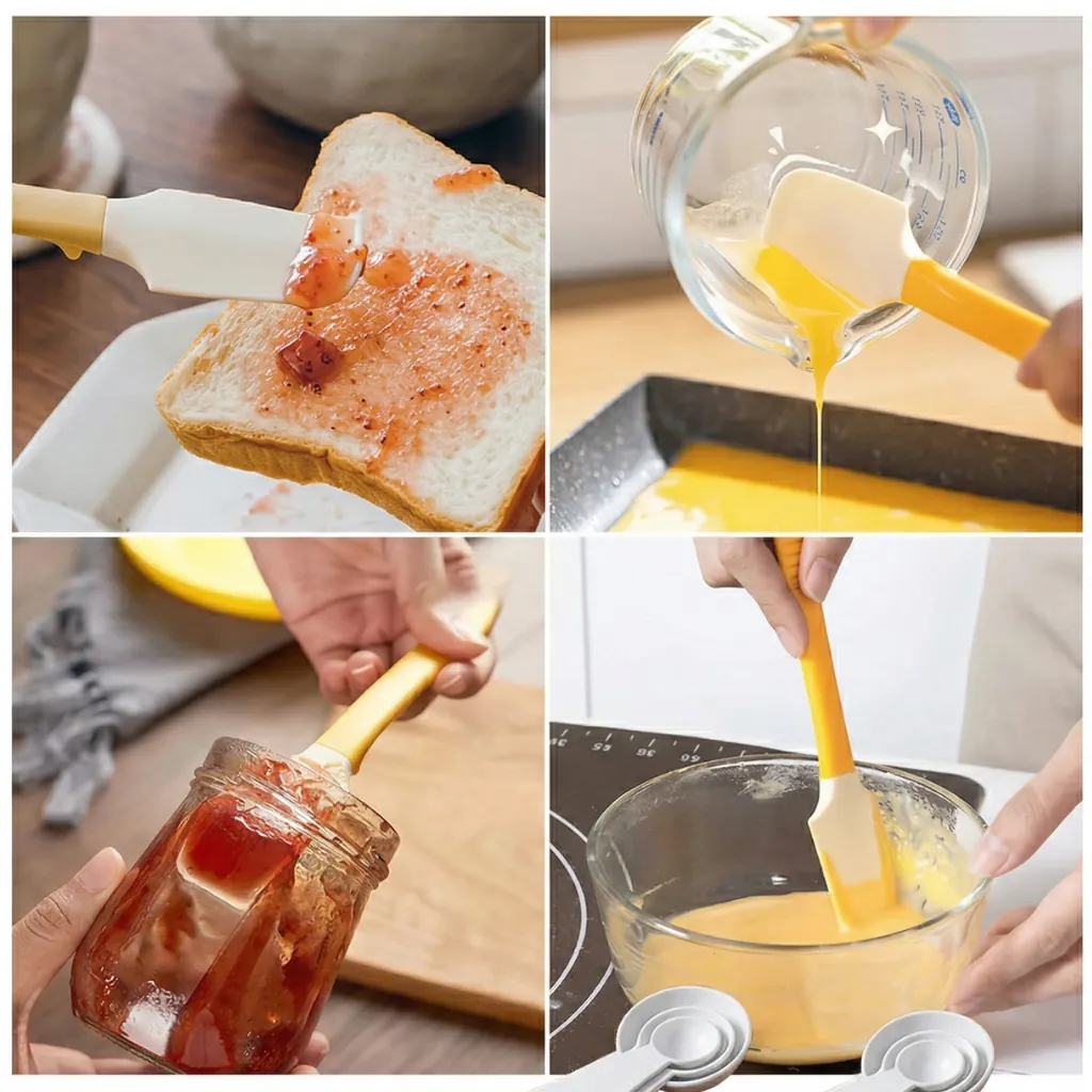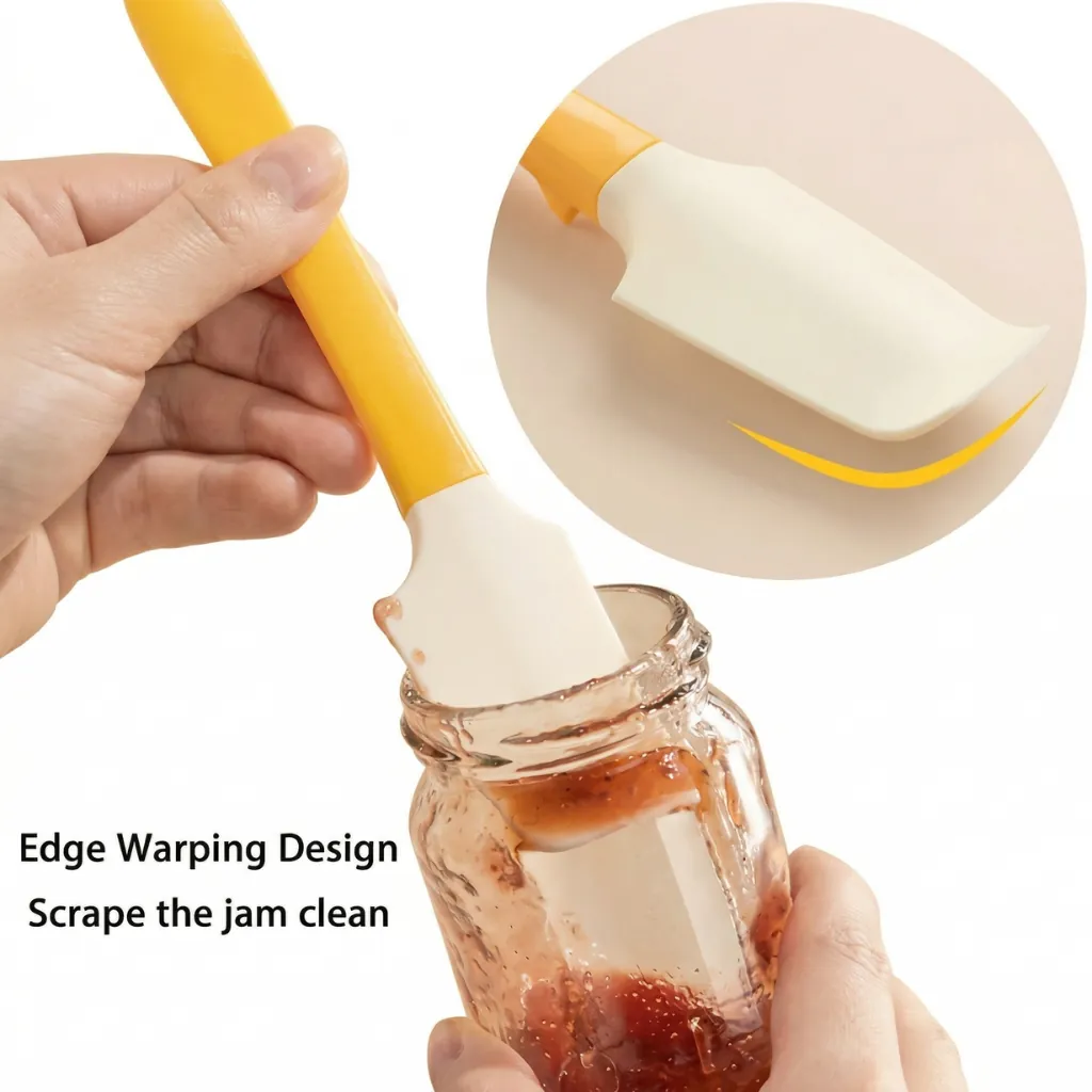Crafted from premium food-grade silicone, it is safe, durable, and resistant to heat, making it ideal for both cooking and baking tasks. The flexible yet sturdy design allows you to reach every corner of jars and containers, reducing waste and maximizing usage.
