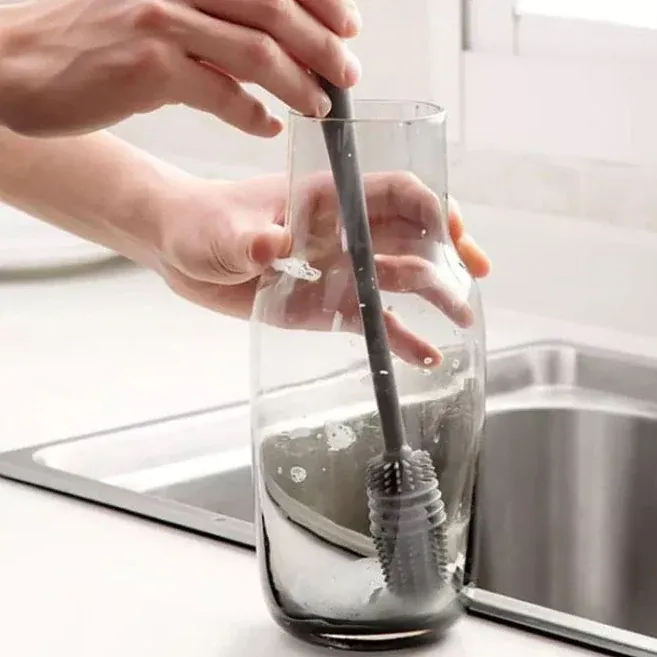 The Silicone Glass & Cleaning Brush is designed for effortless and thorough cleaning of glasses, bottles, mugs, and containers. Made with flexible, heat-resistant silicone bristles, it cleans deep without scratching surfaces. The ergonomic handle provides a firm grip, making it ideal for daily use in kitchens, homes, cafés, or offices. Easy to wash, quick-drying, and long-lasting, this brush prevents odor buildup and ensures hygienic cleaning. Available in both small and big sizes, it suits all types of glassware and bottles. A must-have cleaning tool for every household.