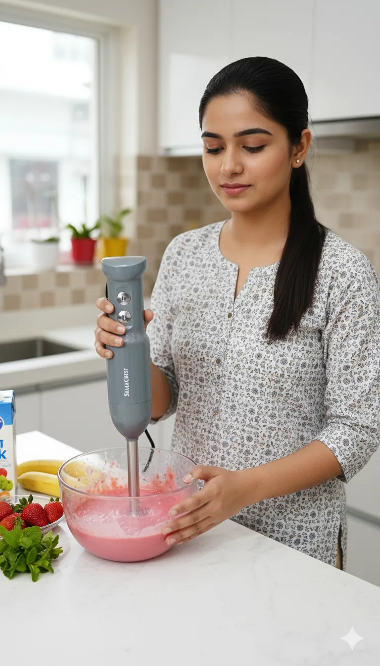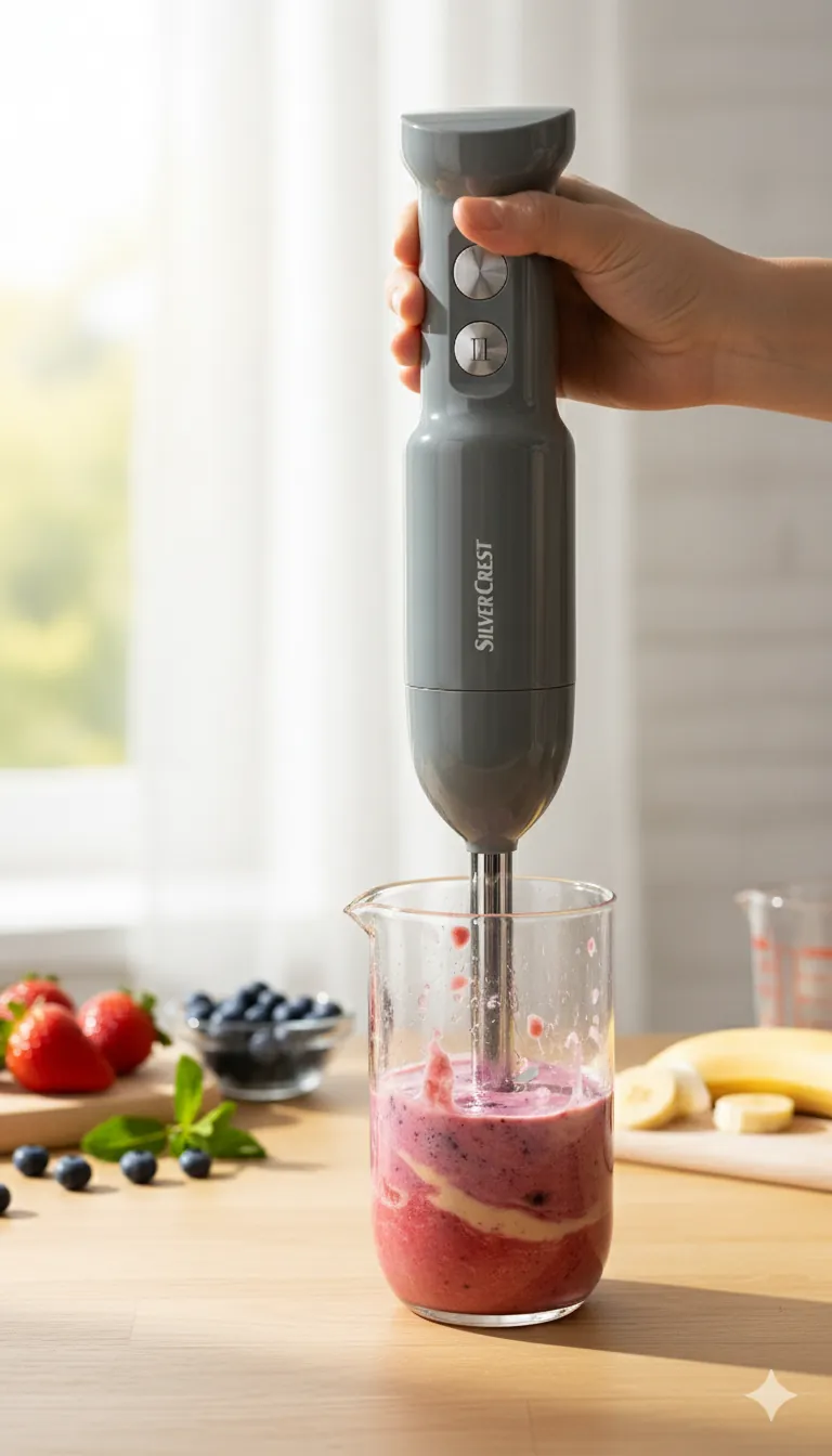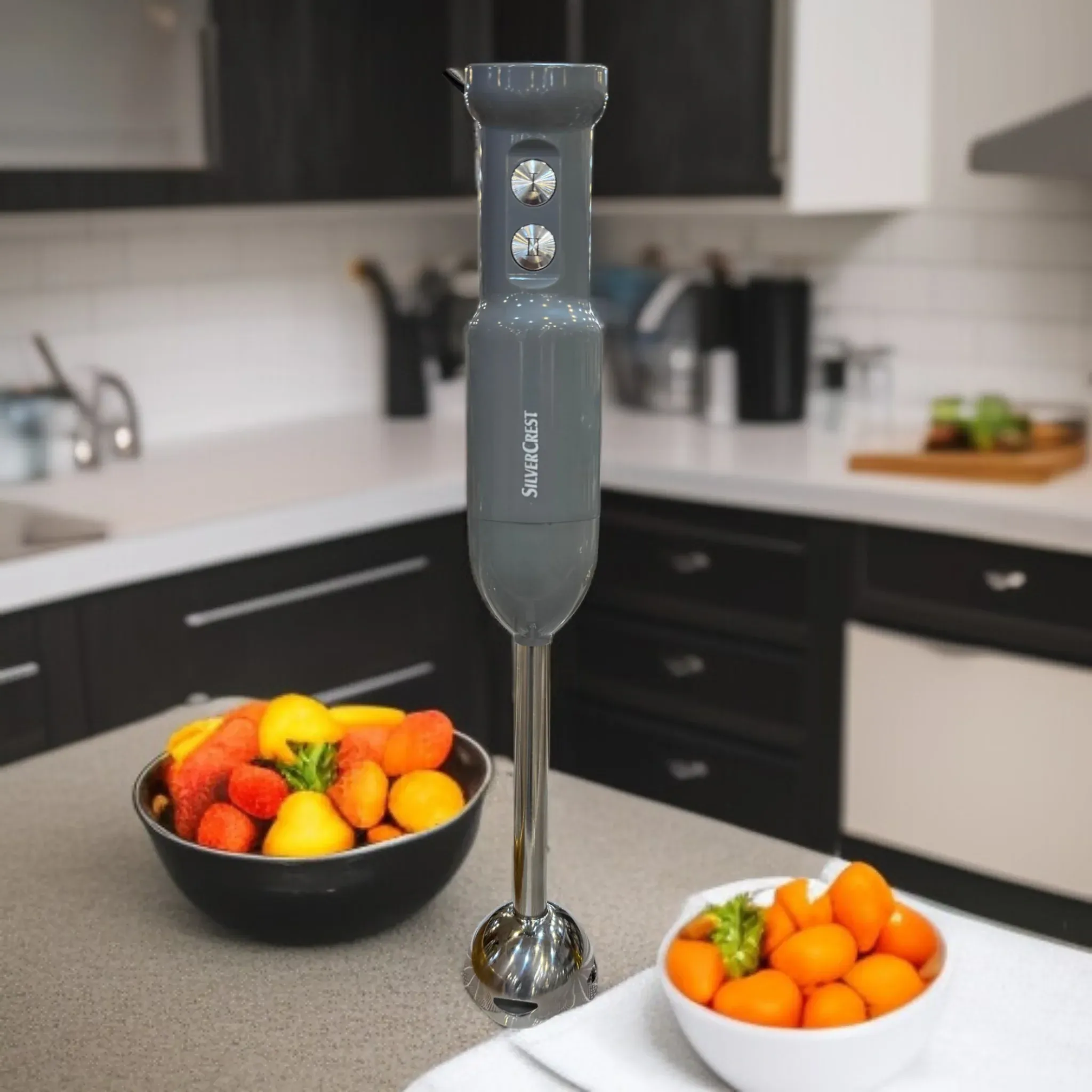 The Silver Crest SL-302 Hand Blender is your ultimate partner for quick and efficient food preparation. Powered by a robust 300W motor, this high-speed hand blender makes light work of even the toughest ingredients. Its advanced 4-blade system is crafted from high-quality stainless steel, ensuring superior blending performance and durability for a smooth, lump-free consistency every time.
