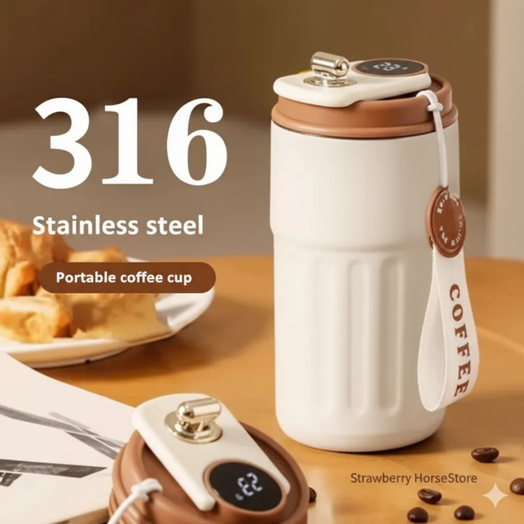 Smart Stainless Steel Vacuum Coffee Mug with Digital LED Temperature Display | Portable Insulated Thermal Travel Tumbler Cup | Leakproof & Hot/Cold