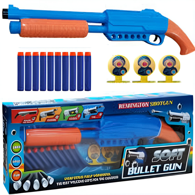 Unleash fun and action with this Pump-Action Soft Bullet Shotgun Toy Gun – specially designed for adventurous kids! This toy gun includes 10 soft foam darts and 4 suction cup target discs, allowing kids to enjoy hours of safe shooting and target practice indoors or outdoors.