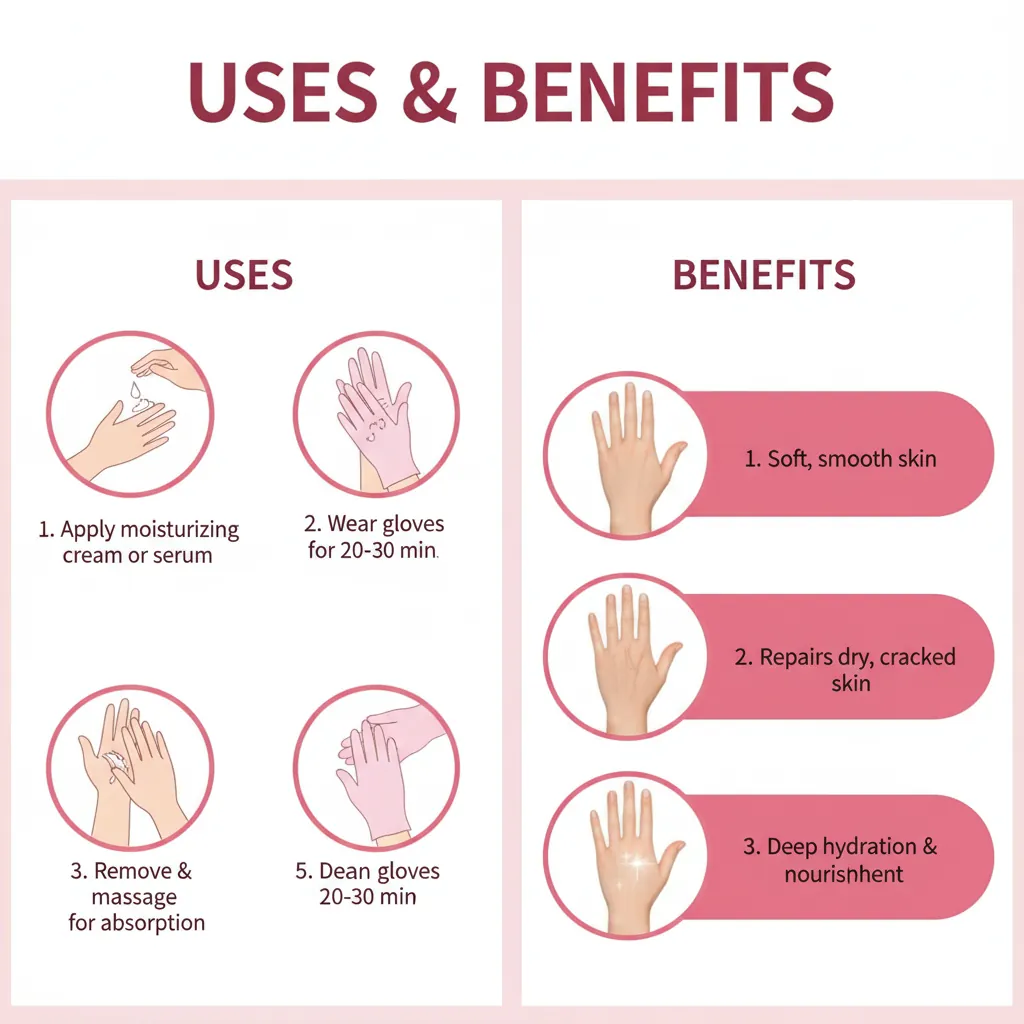 Made from high-quality, comfortable silicone gel, these gloves and socks create an occlusive layer that deeply seals in your favorite lotion, cream, or balm. This process dramatically boosts the absorption and efficacy of your moisturizing products, helping to repair cracked heels and dry hands with professional-grade results.