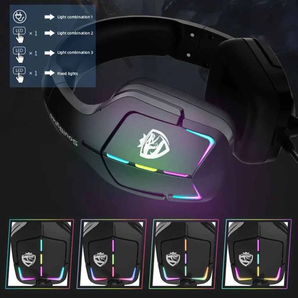 Its adjustable noise-cancelling microphone ensures your voice is heard clearly during team chats and online matches, while the RGB LED lighting effects create a stylish and immersive gaming environment.