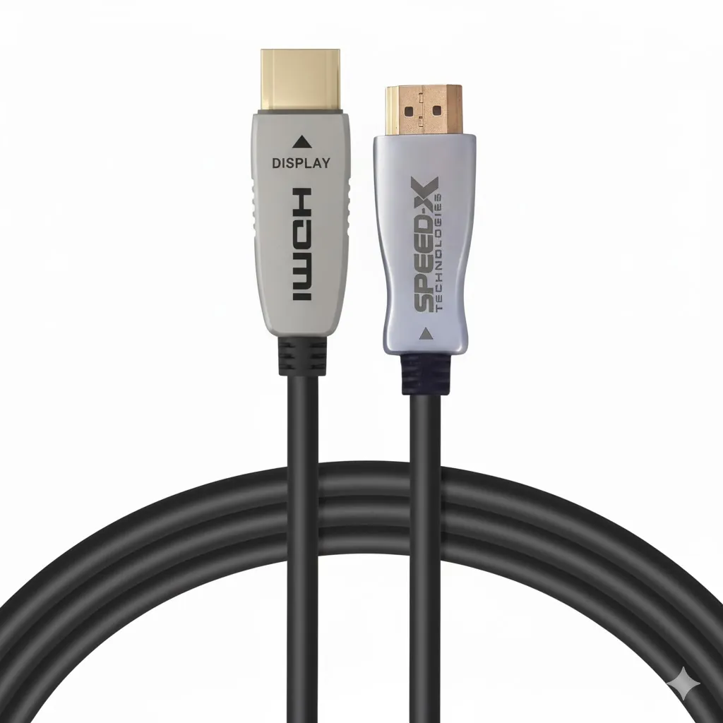 Future-proof your audio-visual setup with the SPEED-X 15M Fiber Optic Active Optical Cable (AOC). Leveraging the power of fiber optics and supplementary 30AWG copper, this HDMI 2.1 cable is designed for ultra-high-speed transmission over long distances with zero signal loss and superior EMI resistance.