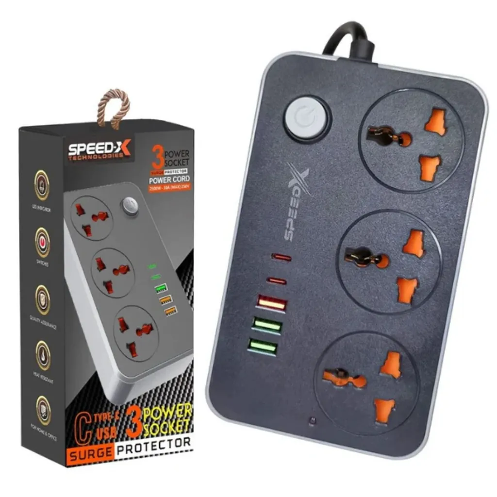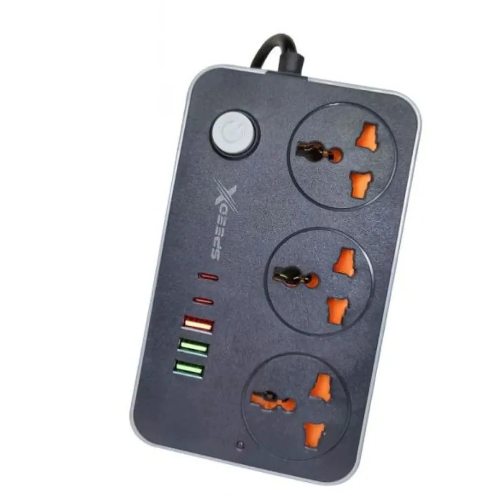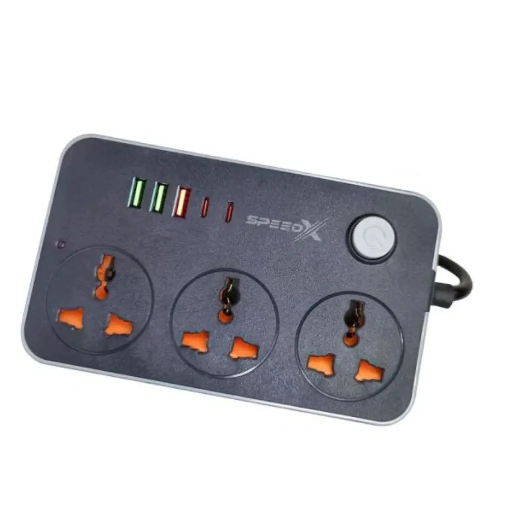 The SPEED-X 603PU Power Universal Travel Extension is a versatile and durable power hub designed to meet all your charging needs. Equipped with 3 universal sockets, 3 USB ports, and 2 fast Type-C charging ports, it supports multiple devices simultaneously — from smartphones and tablets to laptops and home appliances.