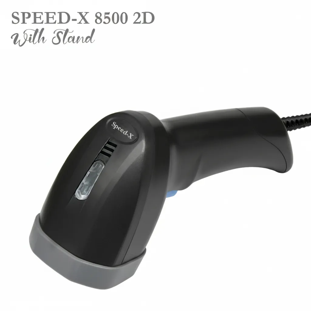 The Speed-X 8500 2D is a professional-grade handheld barcode scanner built for speed, accuracy, and reliability in high-throughput environments. Equipped with a high-resolution CMOS sensor, it instantly captures 1D barcodes, QR codes, PDF417, Data Matrix, and other 2D symbologies—even from damaged labels or smartphone screens. The bundled adjustable gooseneck stand supports seamless auto-sense operation: simply place the scanner in the stand for hands-free presentation scanning or lift it for manual use. USB connectivity with keyboard emulation ensures instant compatibility with Windows, macOS, and Linux—no drivers needed. Engineered for tough conditions, it survives multiple drops from 1.5 meters and features an IP42-rated seal against dust and splashes. Ideal for point-of-sale systems, inventory tracking, ticketing, and logistics.