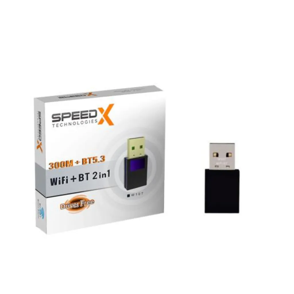 The SPEED-X ALFA W107 (2-in-1) WiFi + Bluetooth 5.3 USB Adapter is the perfect solution for upgrading your desktop or laptop with both wireless internet and Bluetooth capabilities. Featuring 300Mbps high-speed WiFi and Bluetooth 5.3 technology, it delivers faster data transmission, stronger connections, and improved range.