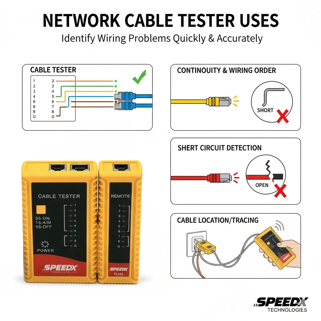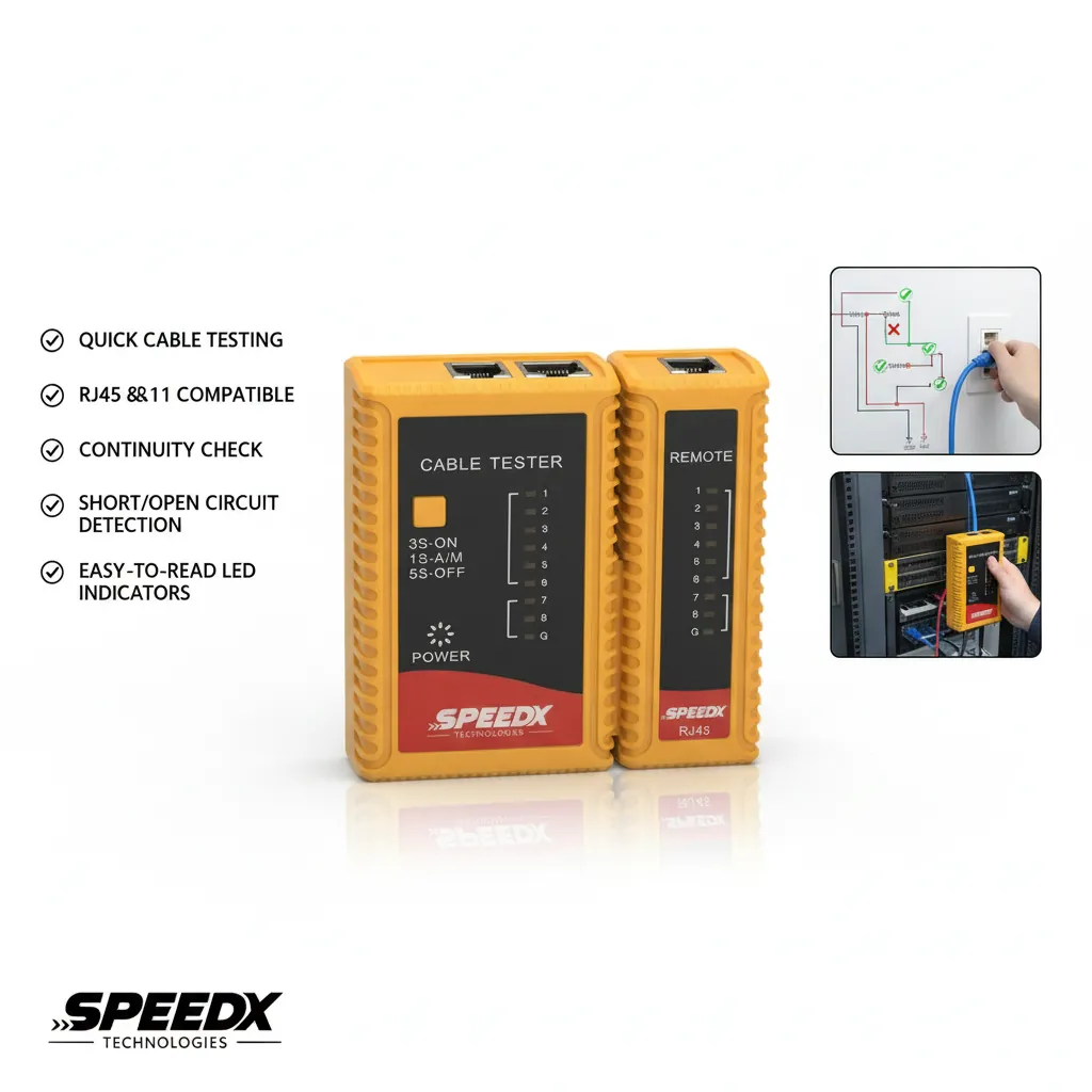 SPEEDX 368A Professional Network LAN Cable Tester and Line Checker with Dual RJ45 Ports | Diagnostic Tool for Ethernet UTP/STP, Short/Open Circuits, and Crossover/Straight Cables