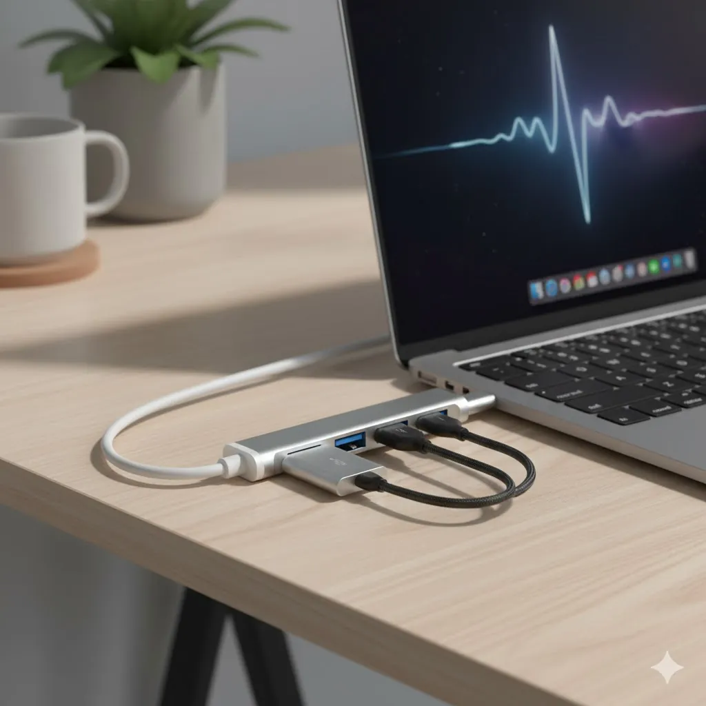 Elevate your Type-C laptop or MacBook setup with this premium aluminum hub. This 6-in-1 solution delivers power, data, and video connections through a single USB-C port, making it the perfect docking solution for professionals, students, and travelers.