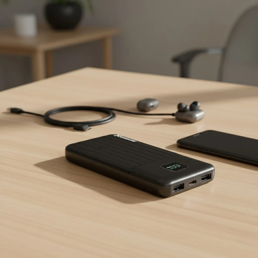 One of the standout features of the SP-S188L is its 3-in-1 design: it incorporates multiple charging cables or ports into a single device, supporting devices with different connectors such as Type-C, Lightning and Micro-USB (depending on variant) so you can charge more than one device or share with a friend without digging for extra cables. The unit also features a clear LED digital display that shows the remaining power level in percentage form, so you always know how much charge remains and when it’s time to top up the power bank itself.