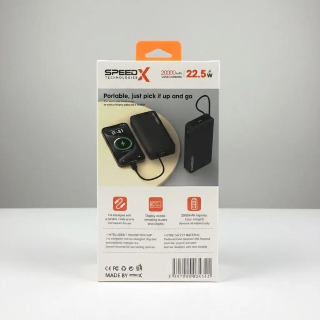 The SPEEDX SP-S285 22.5W 20000mAh Super Fast Charging Power Bank is engineered to deliver powerful, reliable and rapid charging for users on the go. Featuring a large 20,000 mAh capacity, it provides ample power to recharge smartphones, tablets and other USB devices multiple times. The 22.5W fast-charging output ensures your compatible devices regain power quickly, minimizing downtime whether you’re commuting, traveling or simply away from a wall outlet.
