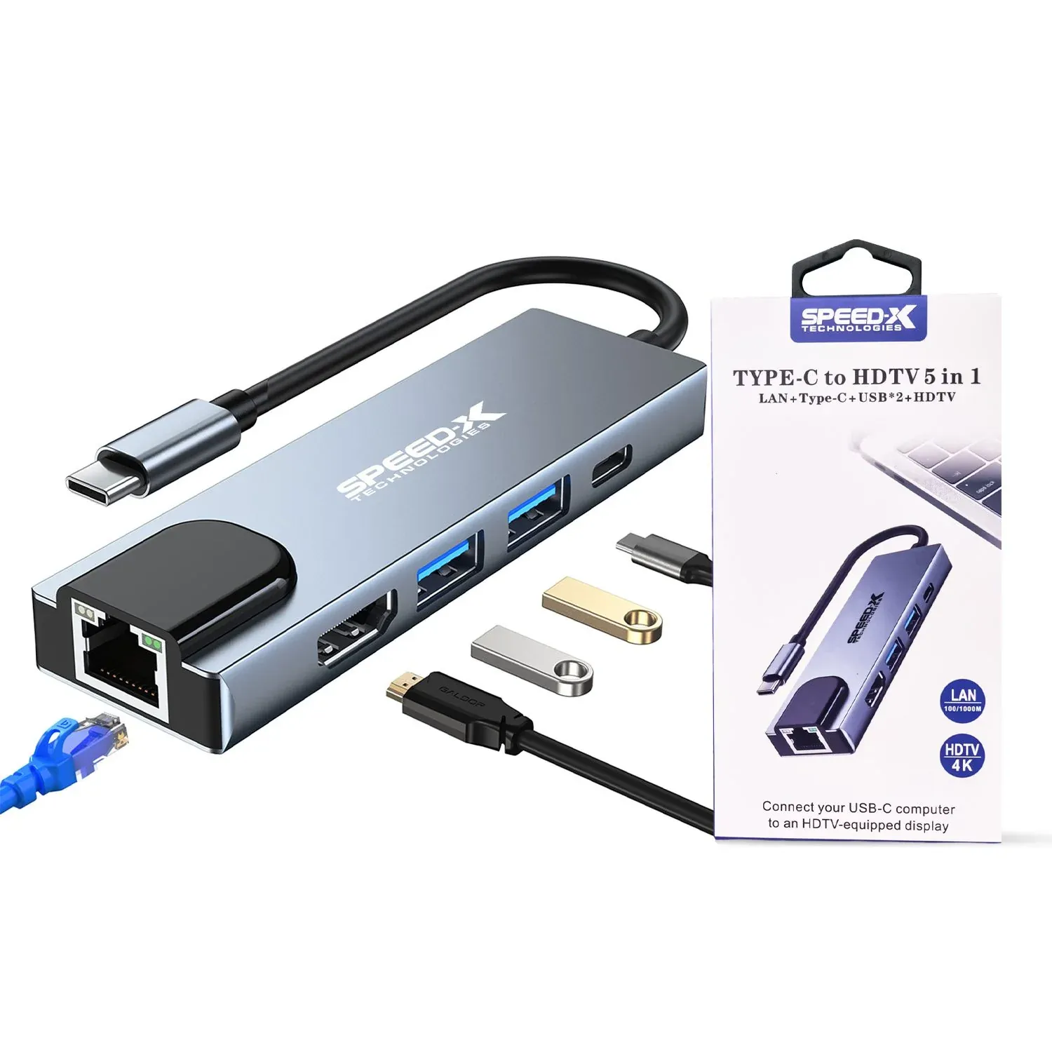 Experience ultimate connectivity and performance with the SPEEDX (SP-TC501) 5-in-1 Multi-Port Type-C 4K HDMI USB 3.0 Converter — your all-in-one hub for seamless data transfer, 4K display, and fast charging.