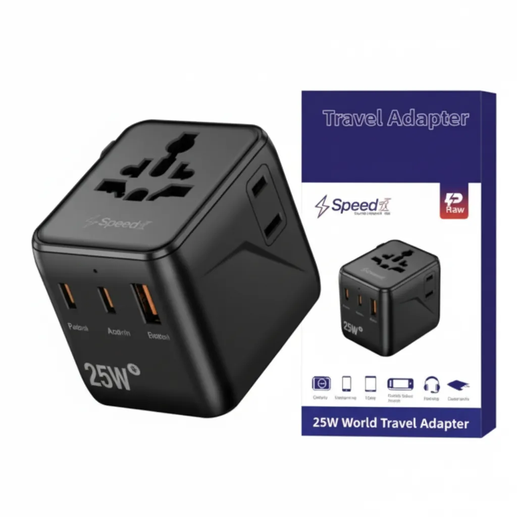 The SpeedX SP-TCW02 Travel Adapter 25W PD (2C + 1A + 2AC) is a compact and powerful solution for charging multiple devices simultaneously. Designed for travelers and everyday users, it offers two Type-C ports, one USB-A port, and two AC sockets, allowing you to charge smartphones, tablets, laptops, and other electronic devices at once.