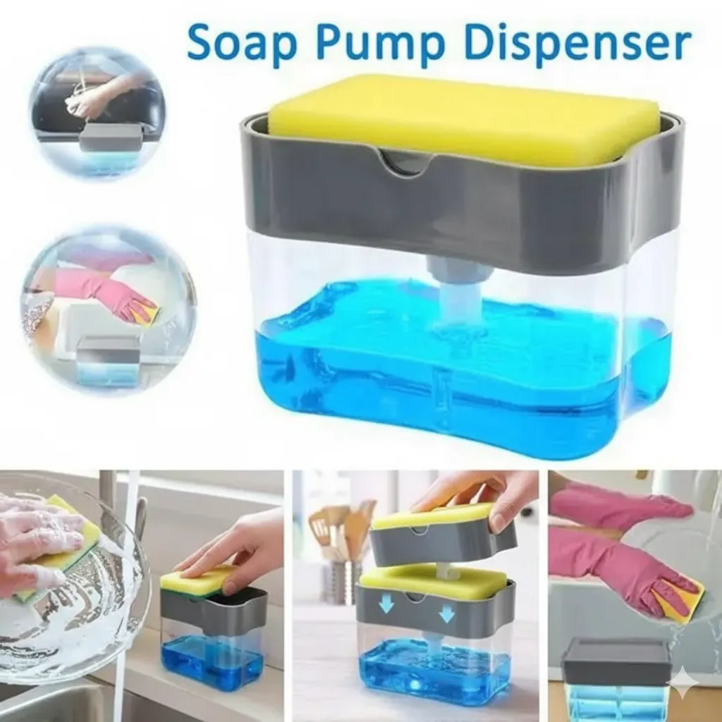 Organize your kitchen sink with this practical sponge caddy and soap dispenser combination - a convenient 2-in-1 solution.It keeps your dish soap and sponge neatly organized in one place, making dishwashing more efficient and your sink area tidier. Simply press down on the sponge to dispense the perfect amount of soap directly onto it.