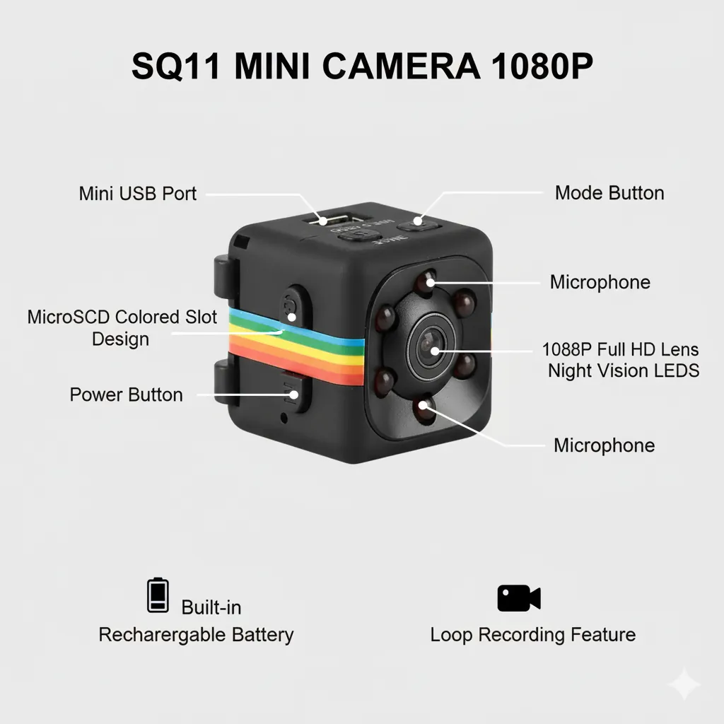 Compact, reliable, and multifunctional — the SQ11 Mini Camera 1080P is your go-to portable security companion.