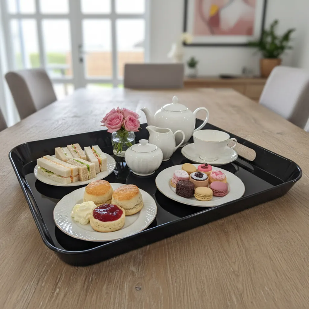 The tray is easy to clean and reusable, making it suitable for homes, cafes, restaurants, and parties. Its elegant design enhances table presentation and makes serving more professional and attractive.