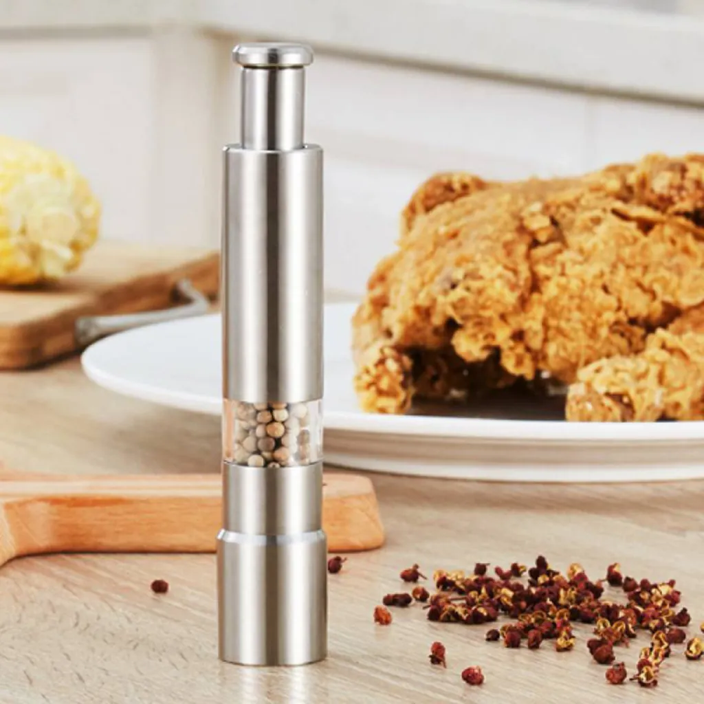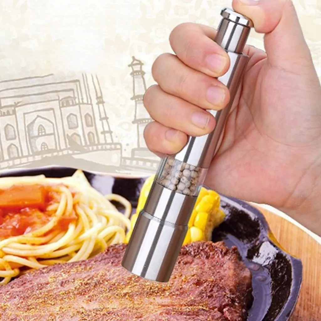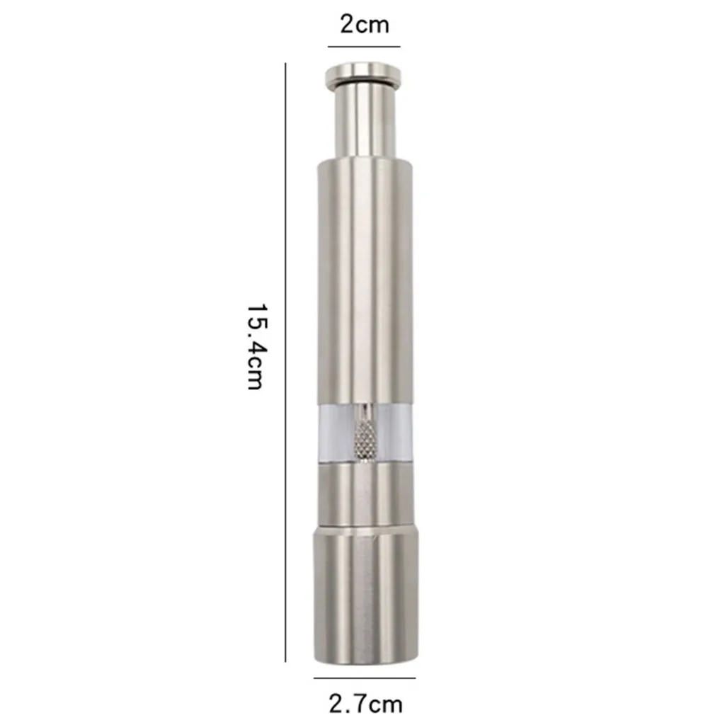 The Stainless Steel Manual Pepper Grinder is a sleek and functional kitchen tool designed to elevate your culinary experience. Crafted from high-quality stainless steel, this grinder measures 15.4cm in height, 6.2cm in diameter at its widest point, and 5cm at the base, with a compact 1.5cm adjustment ring for easy handling. Equipped with an adjustable ceramic mill, it allows you to customize the coarseness of your grind—perfect for pepper, salt, or other spices—ensuring fresh flavor with every turn. The durable construction resists corrosion and wear, making it ideal for daily use. Its ergonomic design fits comfortably in hand, offering precision grinding for professional and home cooks alike, while adding a modern touch to any kitchen countertop.