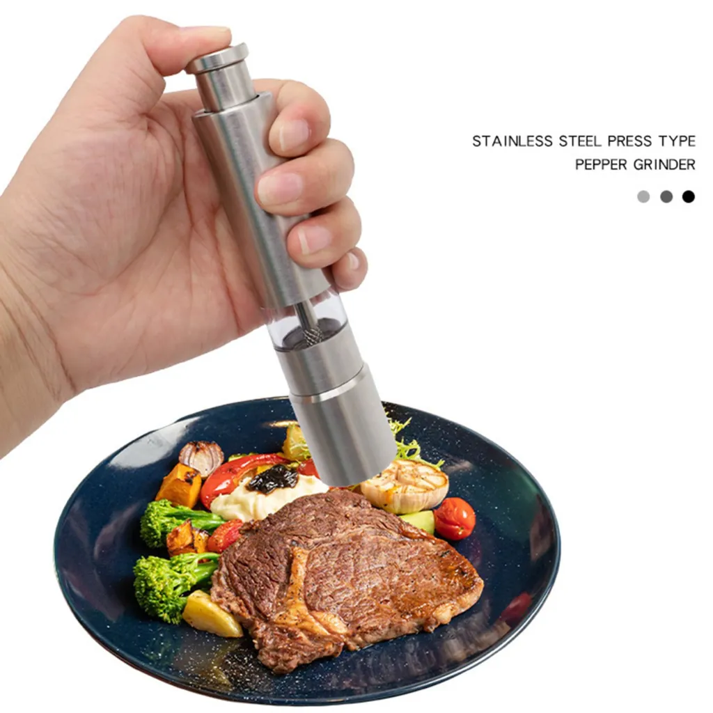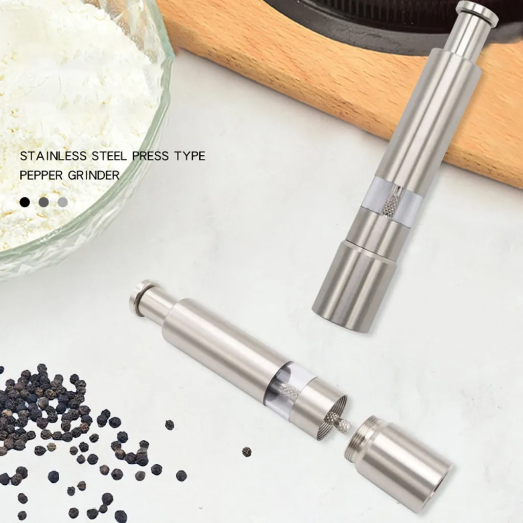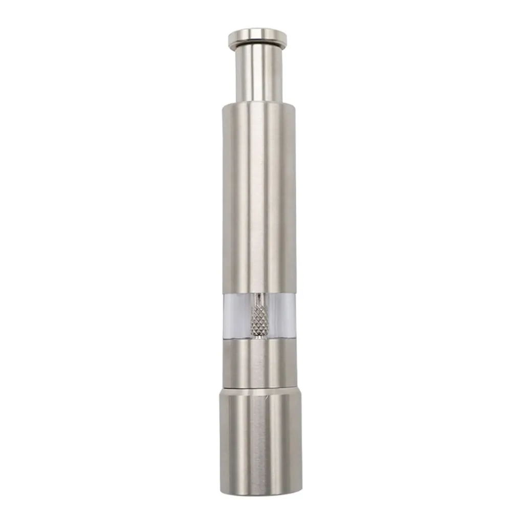 The Stainless Steel Manual Pepper Grinder is a sleek and functional kitchen tool designed to elevate your culinary experience. Crafted from high-quality stainless steel, this grinder measures 15.4cm in height, 6.2cm in diameter at its widest point, and 5cm at the base, with a compact 1.5cm adjustment ring for easy handling. Equipped with an adjustable ceramic mill, it allows you to customize the coarseness of your grind—perfect for pepper, salt, or other spices—ensuring fresh flavor with every turn. The durable construction resists corrosion and wear, making it ideal for daily use. Its ergonomic design fits comfortably in hand, offering precision grinding for professional and home cooks alike, while adding a modern touch to any kitchen countertop.