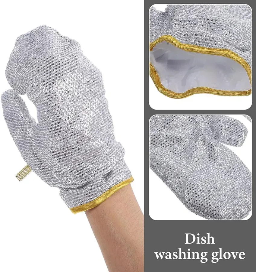 The Stainless Steel Mesh Dishwashing Glove is a heavy-duty cleaning solution for kitchens and household use. Made from high-quality stainless steel wire mesh, this glove provides strong scrubbing power while remaining gentle on surfaces like stainless steel cookware, plates, sinks, and grills.