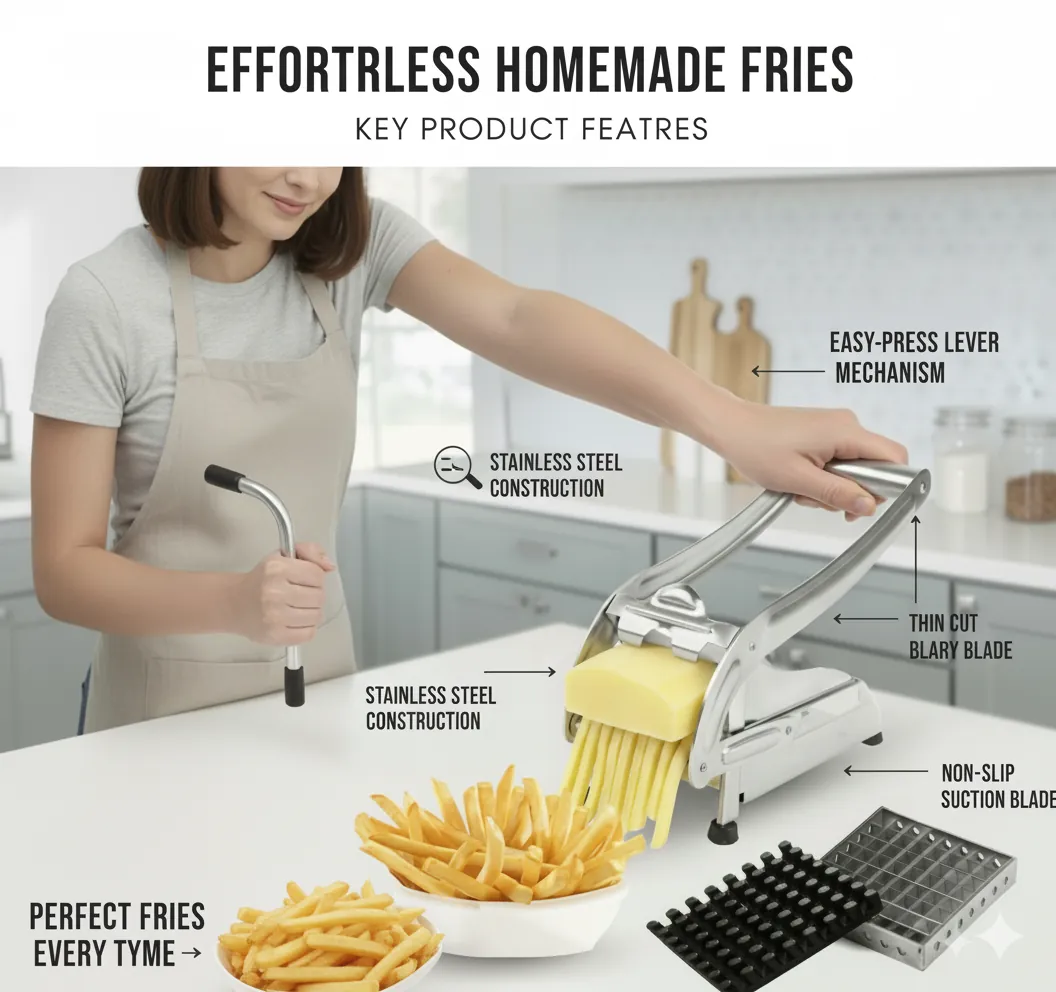 Premium Stainless Steel French Fry Cutter & Potato Chipper