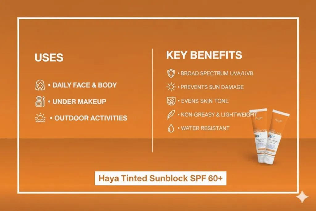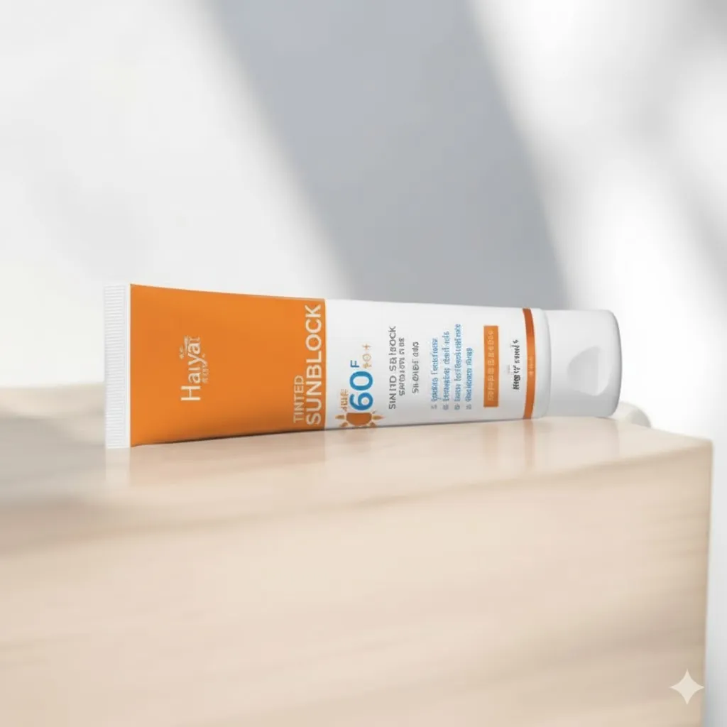 Haya Tinted Sunblock SPF 60+ PA+: Broad Spectrum UVA/UVB Protection for All Skin Types | Water Resistant & Non-Comedogenic Sunscreen