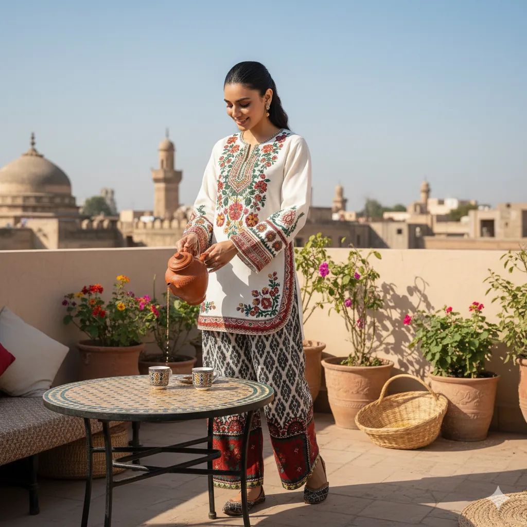 Stitched 2-Piece Suit | Women's Printed Shirt & Trousers in Premium Grip Fabric.Discover a perfect blend of style and convenience with our Stitched 2-Piece Printed Suit, a stunning addition to our new summer collection. This ready-to-wear ensemble is crafted from high-quality premium Grip fabric, known for its soft texture, excellent drape, and breathability, making it ideal for warm weather. The suit includes a chic printed shirt with a decorative neckline and a matching printed trouser, both featuring a complementary design. The trouser has an elasticated waist for a comfortable fit, while the shirt offers a relaxed silhouette. This versatile suit is perfect for casual outings, daytime events, or social gatherings, providing a complete and fashionable look without the hassle of tailoring.