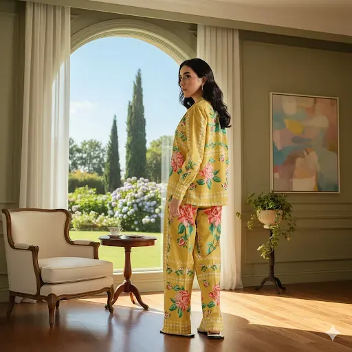 Stitched 2-Piece Suit | Women's Printed Shirt & Trousers in Premium Grip Fabric. Discover a perfect blend of style and convenience with our Stitched 2-Piece Printed Suit, a stunning addition to our new summer collection. This ready-to-wear ensemble is crafted from high-quality premium Grip fabric, known for its soft texture, excellent drape, and breathability, making it ideal for warm weather. The suit includes a chic printed shirt with a decorative neckline and a matching printed trouser, both featuring a complementary design. The trouser has an elasticated waist for a comfortable fit, while the shirt offers a relaxed silhouette. This versatile suit is perfect for casual outings, daytime events, or social gatherings, providing a complete and fashionable look without the hassle of tailoring.